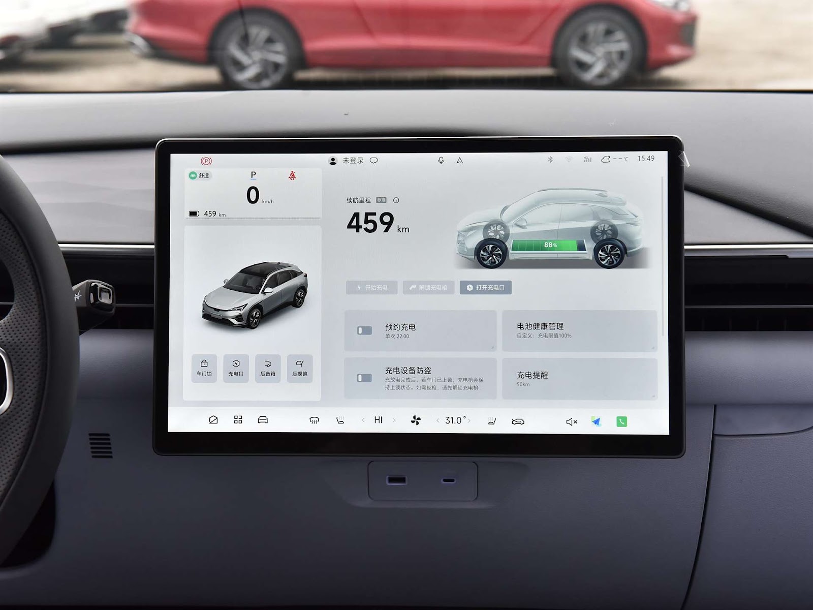 - الشاشة المركزية: تهيمن على لوحة القيادة شاشة تحكم مركزية عائمة ضخمة بقياس 15.6 بوصة.