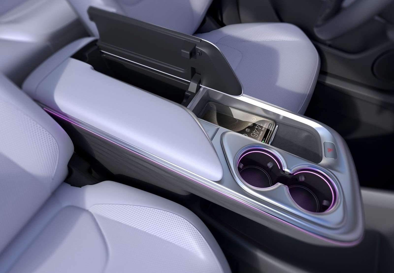 - الراحة و التجهيزات: يشتمل الكونسول الوسطي على تصميم معلق و يدعم الشحن اللاسلكي للهواتف المحمولة بقوة 50 واط، بالإضافة إلى وجود 21 مساحة تخزين موزعة في أنحاء المقصورة.