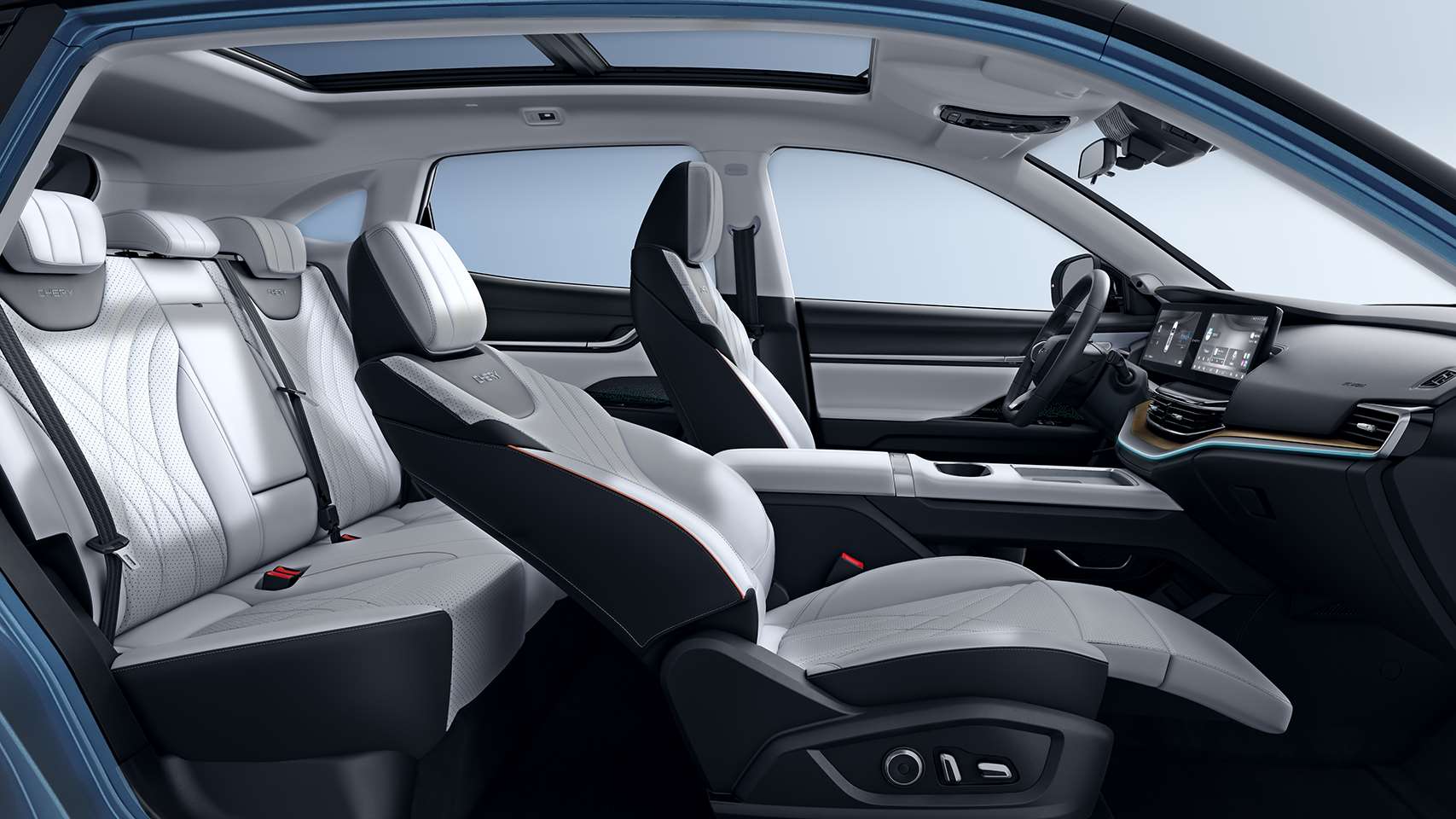 المقاعد الأمامية كهربائية للسائق و الراكب الأمامي، مع توفر وظائف الذاكرة و الترحيب لمقعد السائق، بالإضافة إلى التهوية و التسخين، و هي تجهيزات نادرًا ما تتوفر بهذا السعر في فئة السيارات الكهربائية. كما تتوفر وضعية الاسترخاء و الراحة للسائق، و التي تجعل فترات التوقف أكثر راحة.
