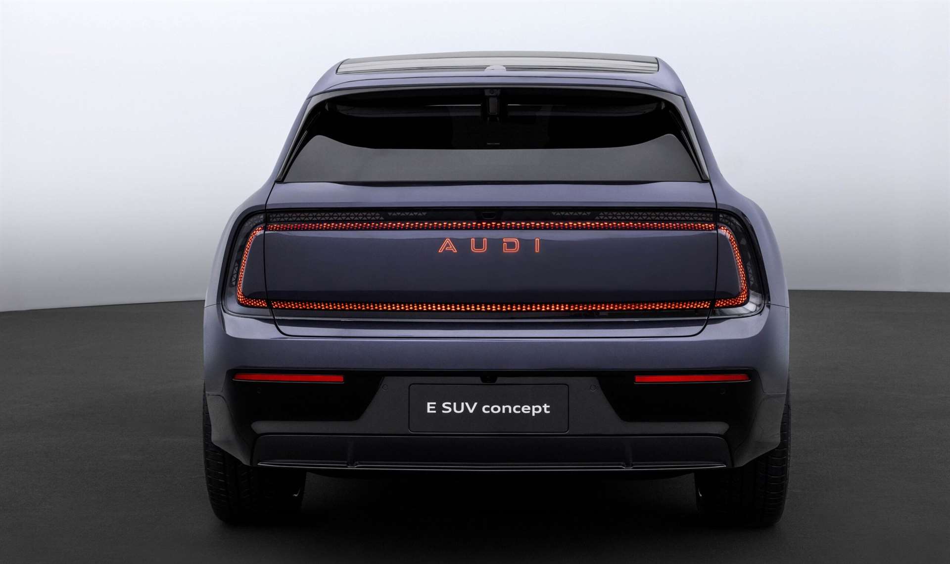 من الخارج، تأتي اودي E7X بتصميم مستقبلي يعكس لغة تصميم جديدة تماماً لأودي (بنسخة خالية من الحلقات الأربع التقليدية). أبعادها كبيرة توحي بالثبات و الفخامة: