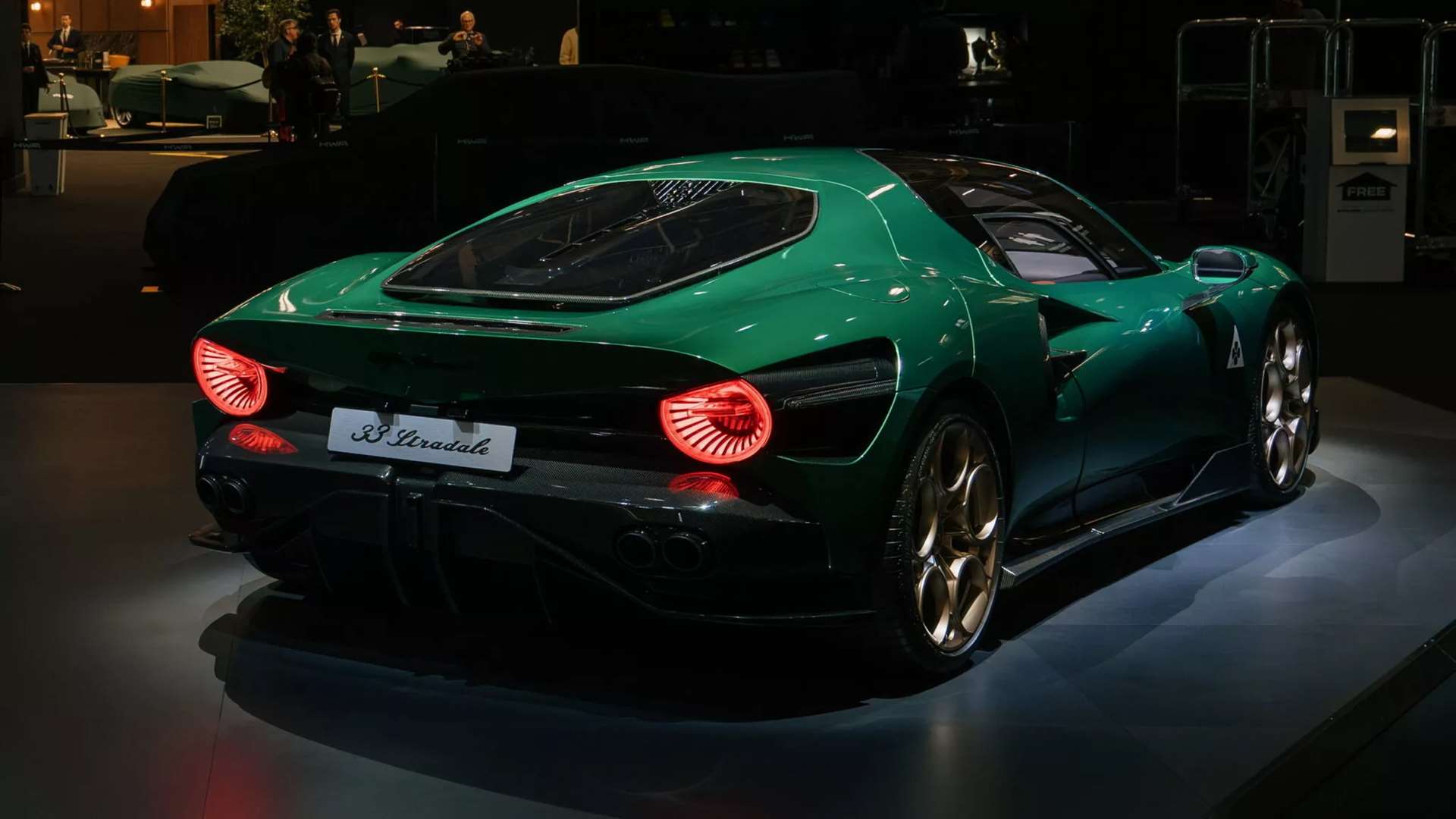 - 33 Stradale باللون الأخضر اللامع و مظهر مستوحى من طرازات أيقونية مثل Giulia GTAm و 33 Bertone Carabo. الإطارات الذهبية و المقصورة الجلدية السوداء تم تصنيع 33 نسخة فقط، و قد بيعت جميعها قبل أن ترى النور.