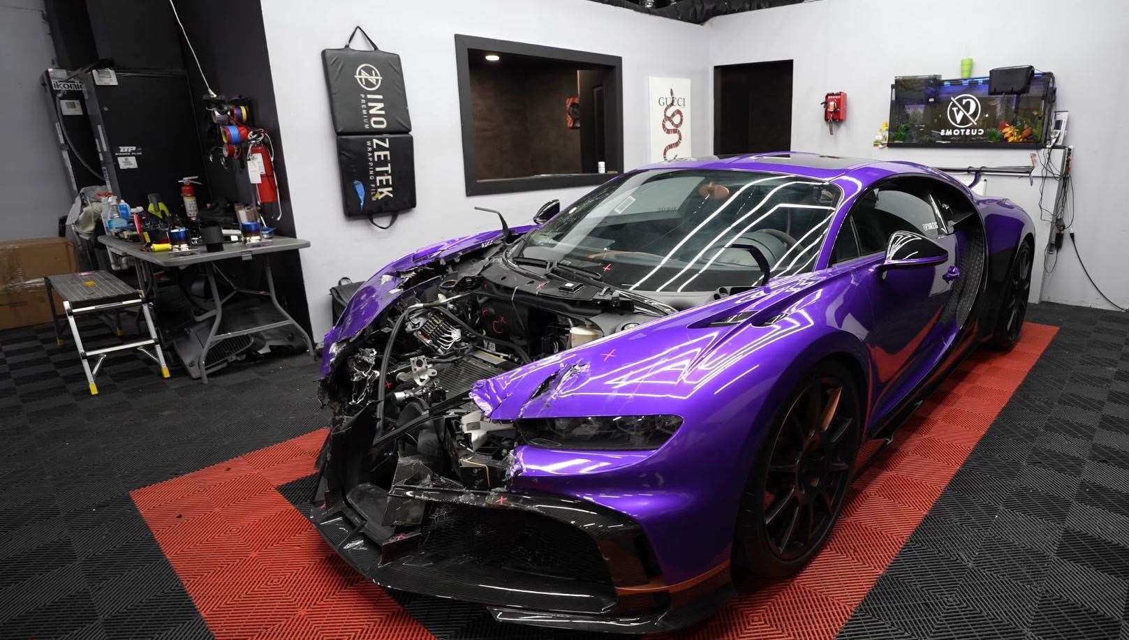 اليوتيوبر الشهير مات أرمسترونج بدأ مشروعاً جريئاً: أراد إحياء بوجاتي شيرون Pur Sport تعرضت لحطام كبير و أصبحت ضمن قائمة السيارات المحظورة للصيانة من قبل بوجاتي. السيارة كانت مملوكة لأليكس جونزاليس، الذي اشتراها مجدداً من موقع Copart الشهير، بعد أن صرفت عليها شركة التأمين مع العلم ان تم الحادث بعد ما قطعت السيارة مسافة تبلغ 4084 ميلاً فقط (6572 كم) .