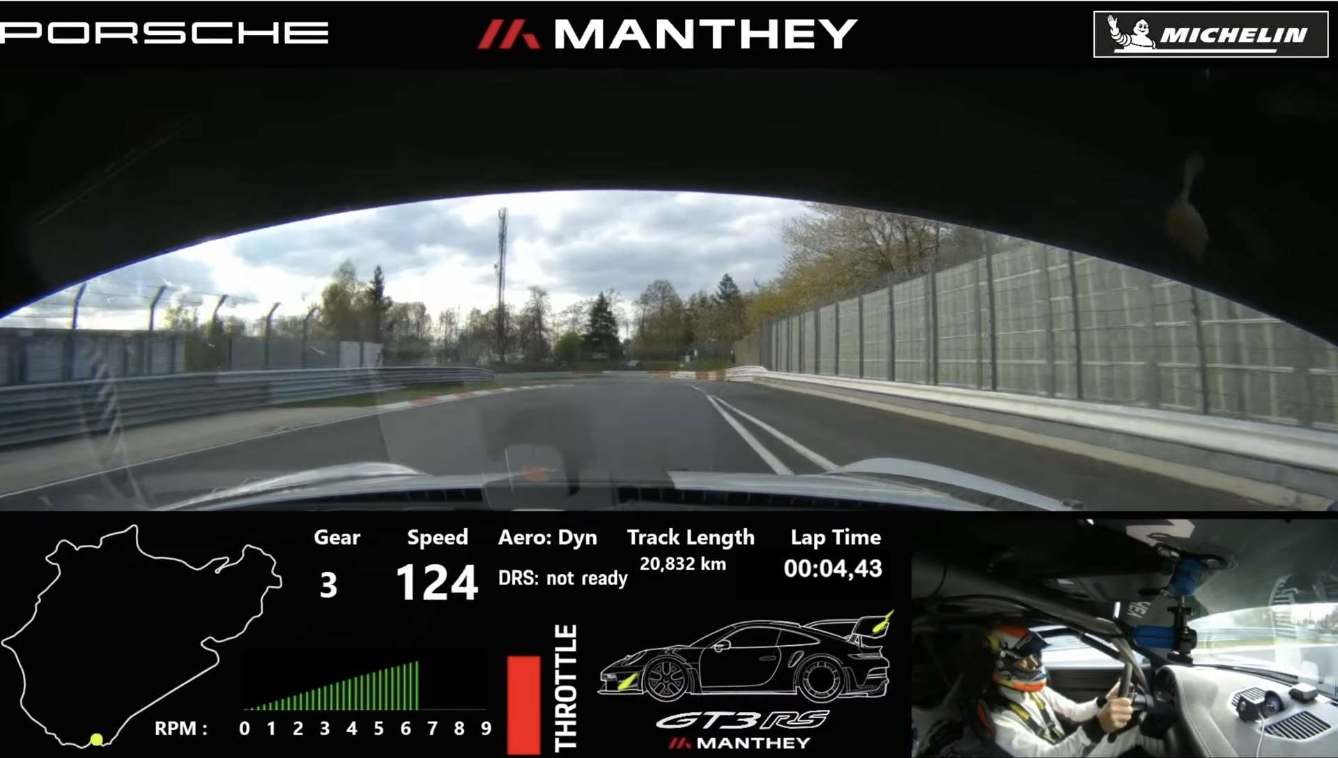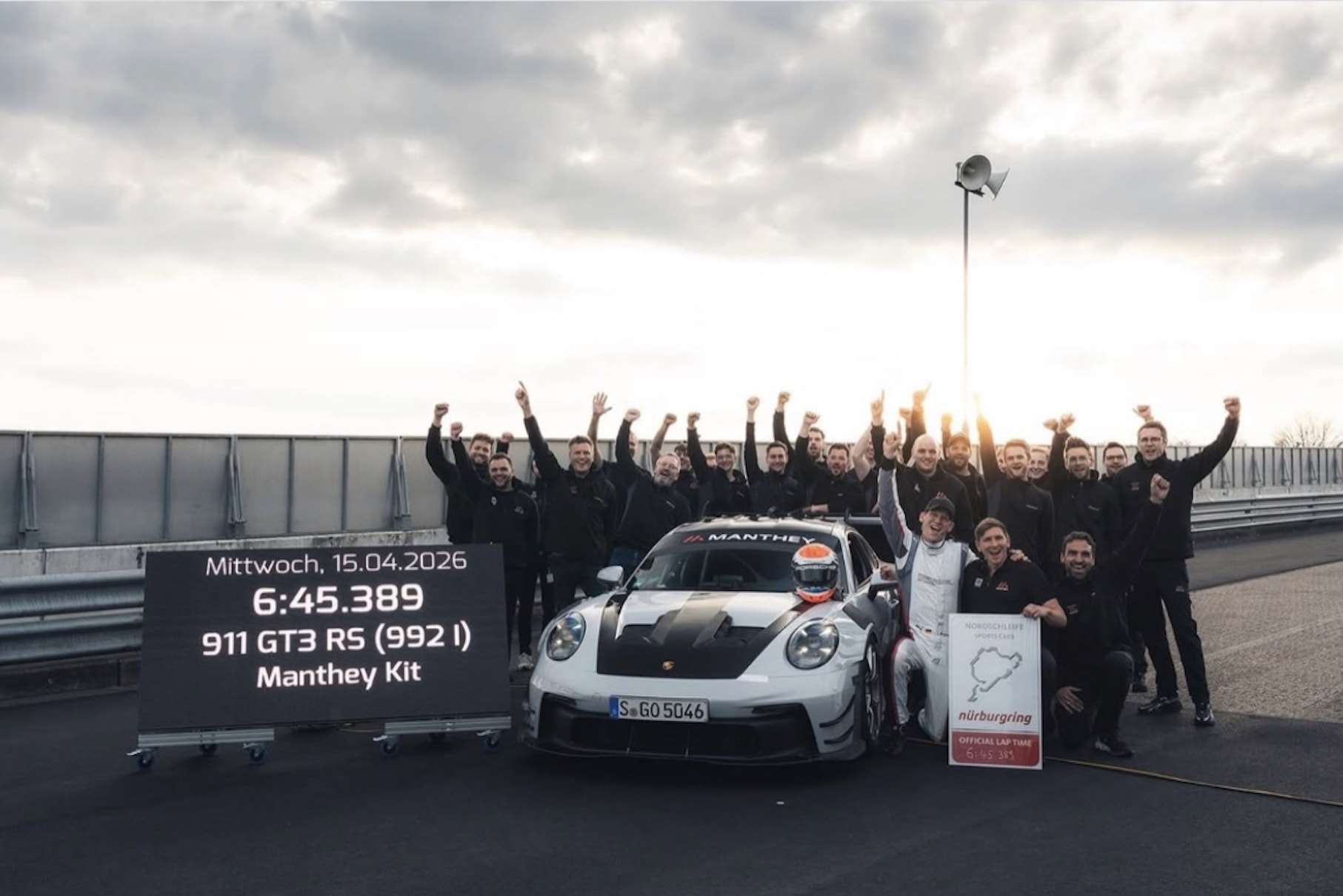 خاض السائق الألماني يورج بيرجمايستر التحدي، و كتب التاريخ بزمن بلغ 6 دقائق و 45.389 ثانية، و هو الزمن الأسرع لأي سيارة رياضية قانونية للسير على الطرق حتى الآن.
