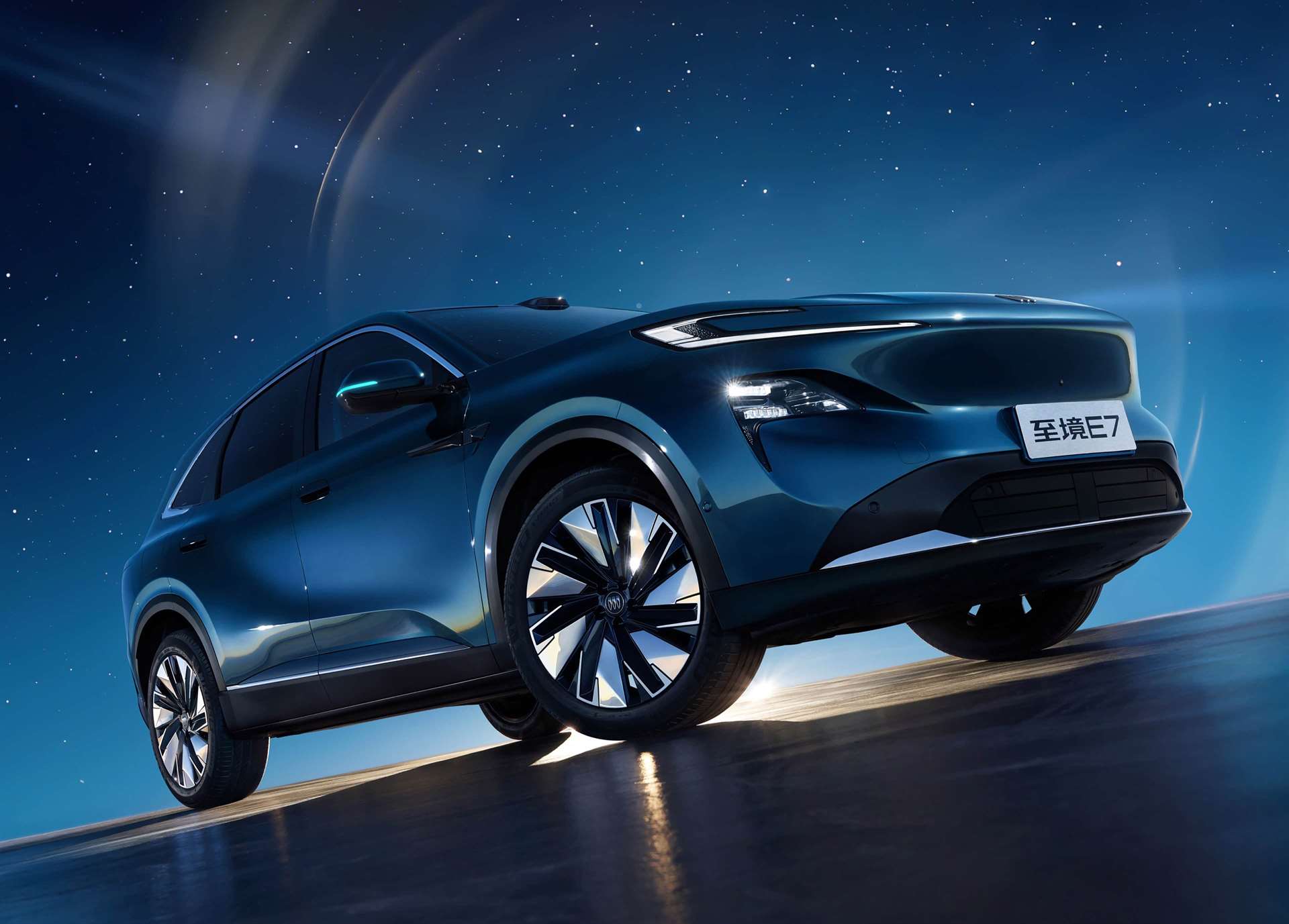 تتميز الجوانب بخطوط انسيابية و مقابض أبواب مخفية تخرج عند الاقتراب من السيارة، مما يعزز من المظهر العصري و يقلل من مقاومة الهواء. و في الخلف، تبرز المصابيح المتصلة بتقنية “Galaxy Spreading Wings” التي تمنح السيارة هوية بصرية فريدة في الليل.