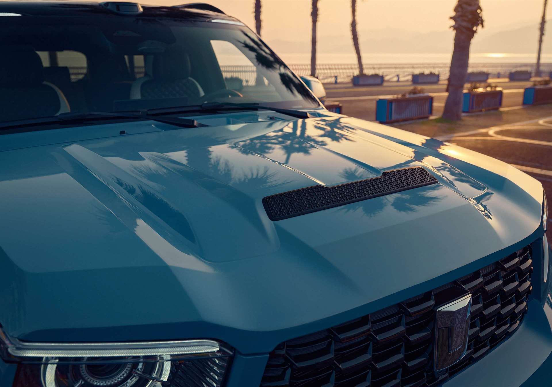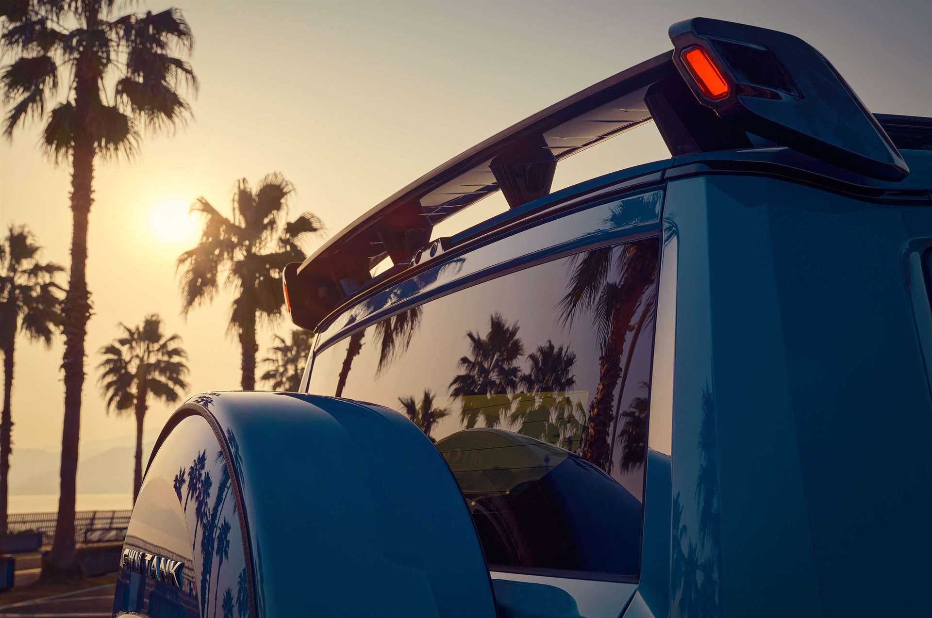 الهيكل الضخم و الزوايا المربعة تمنحها حضوراً على الطريق، بينما الإطار الاحتياطي المثبت على الباب الجانبي الخلفي يعزز الطابع المغامر.