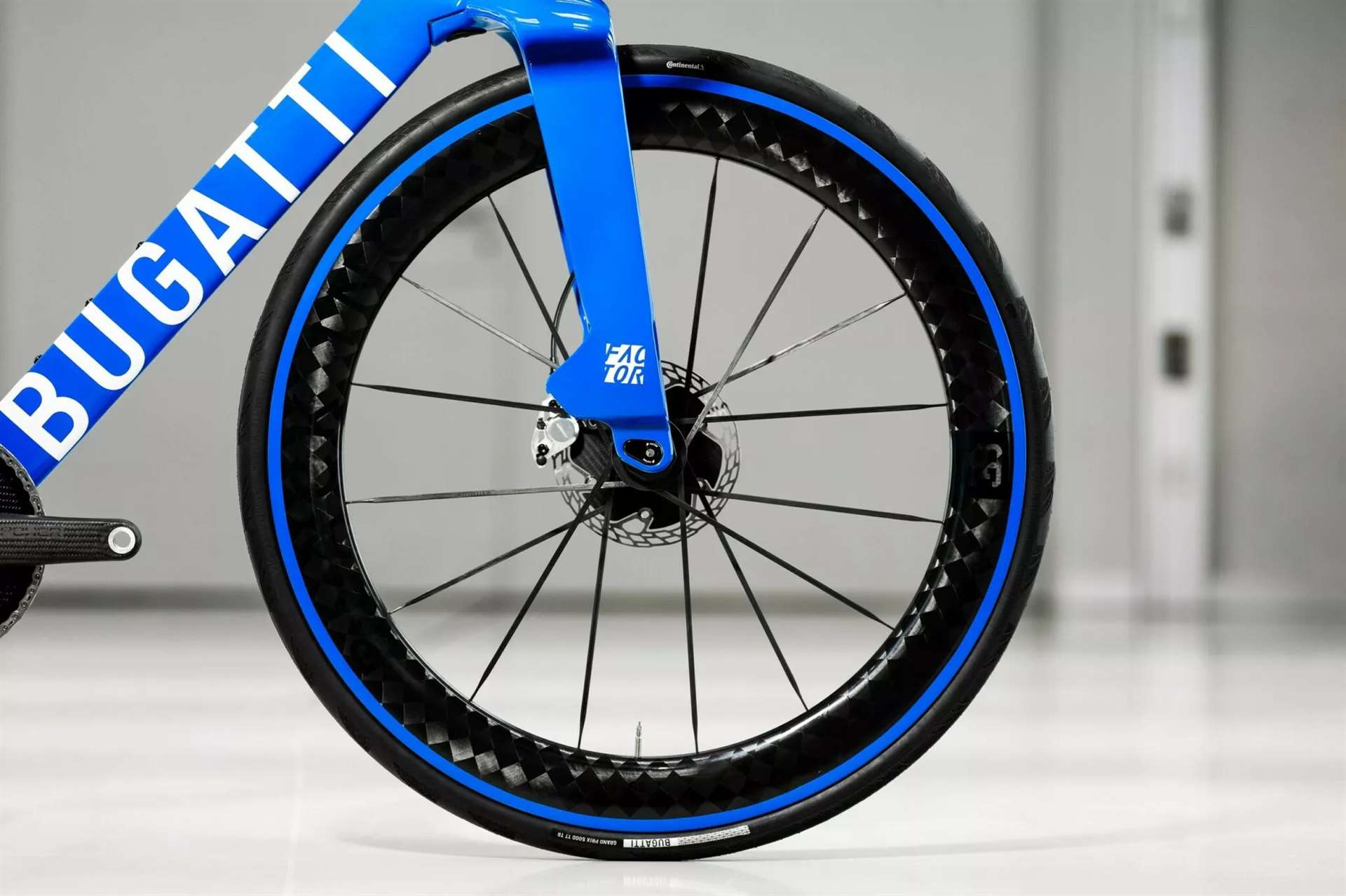 العجلات، عمود المقعد، حلقات السلسلة، أذرع الدواسات و ايضا جزء من أقراص المكابح جميعها مصنوعة من ألياف الكربون. بل إن بوجاتي تعاونت مع شركة Continental لتطوير إطارات خاصة مخصصة لهذا المشروع.