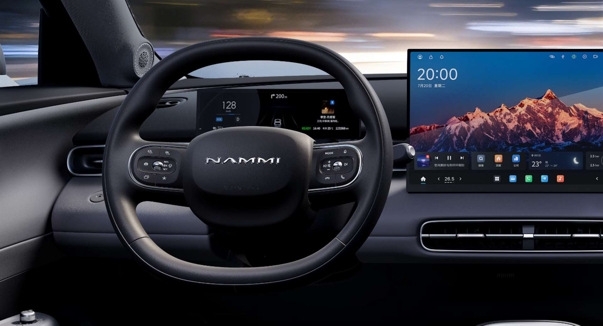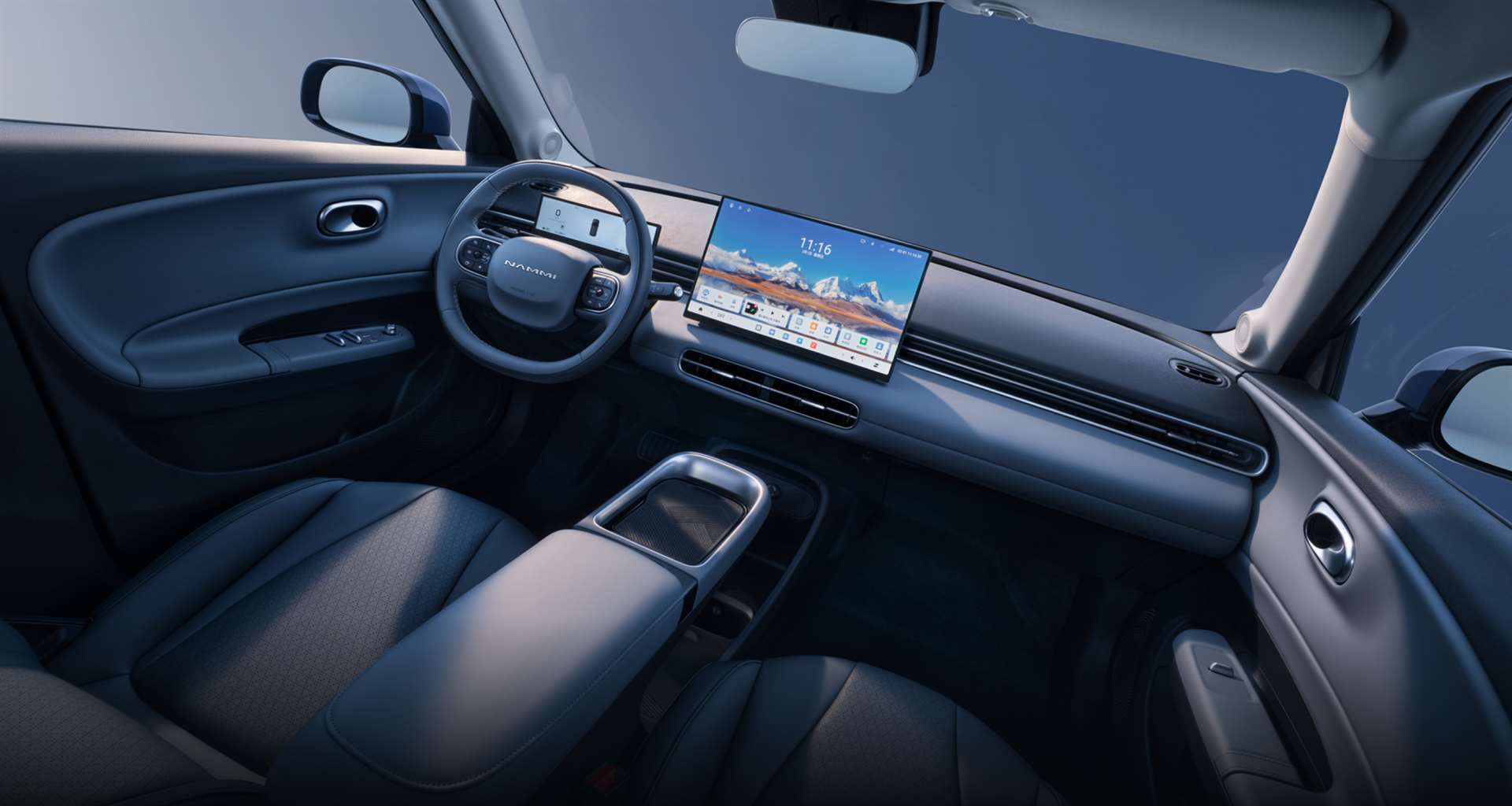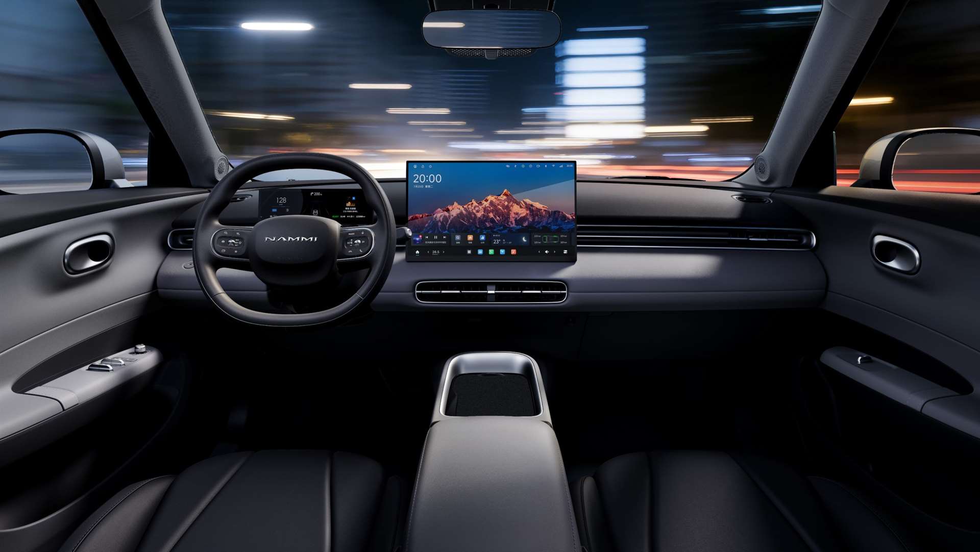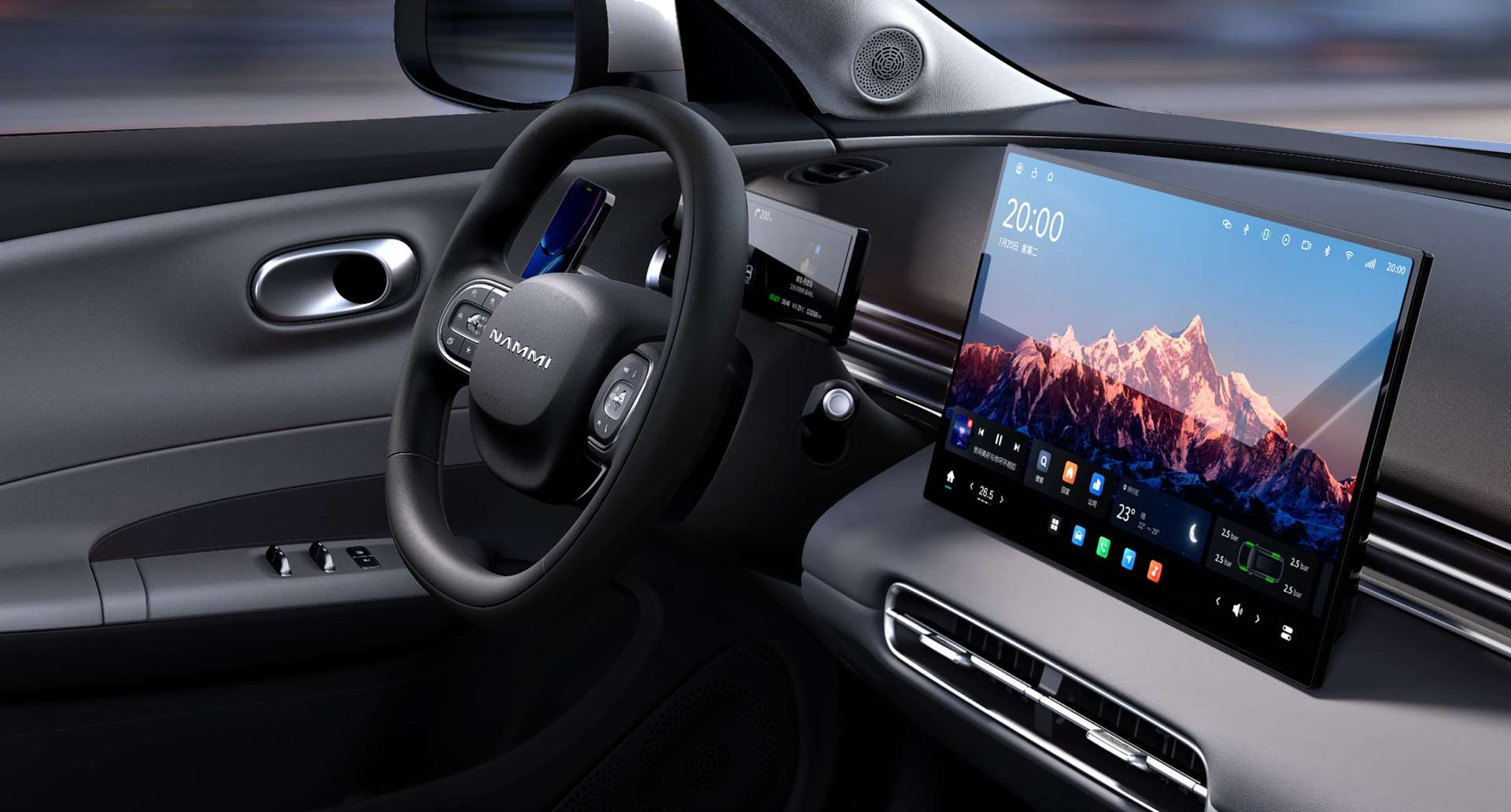 عند الدخول إلى مقصورة نامي 01 كروس، ستشعر أنك في سيارة من فئة أعلى. التصميم الداخلي يغلب عليه البساطة و التقنية الحديثة. تهيمن شاشة تعمل باللمس مقاس 12.8 بوصة على الكونسول الوسطي، و هي المسؤولة عن التحكم في كافة أنظمة الترفيه والملاحة بالسيارة.