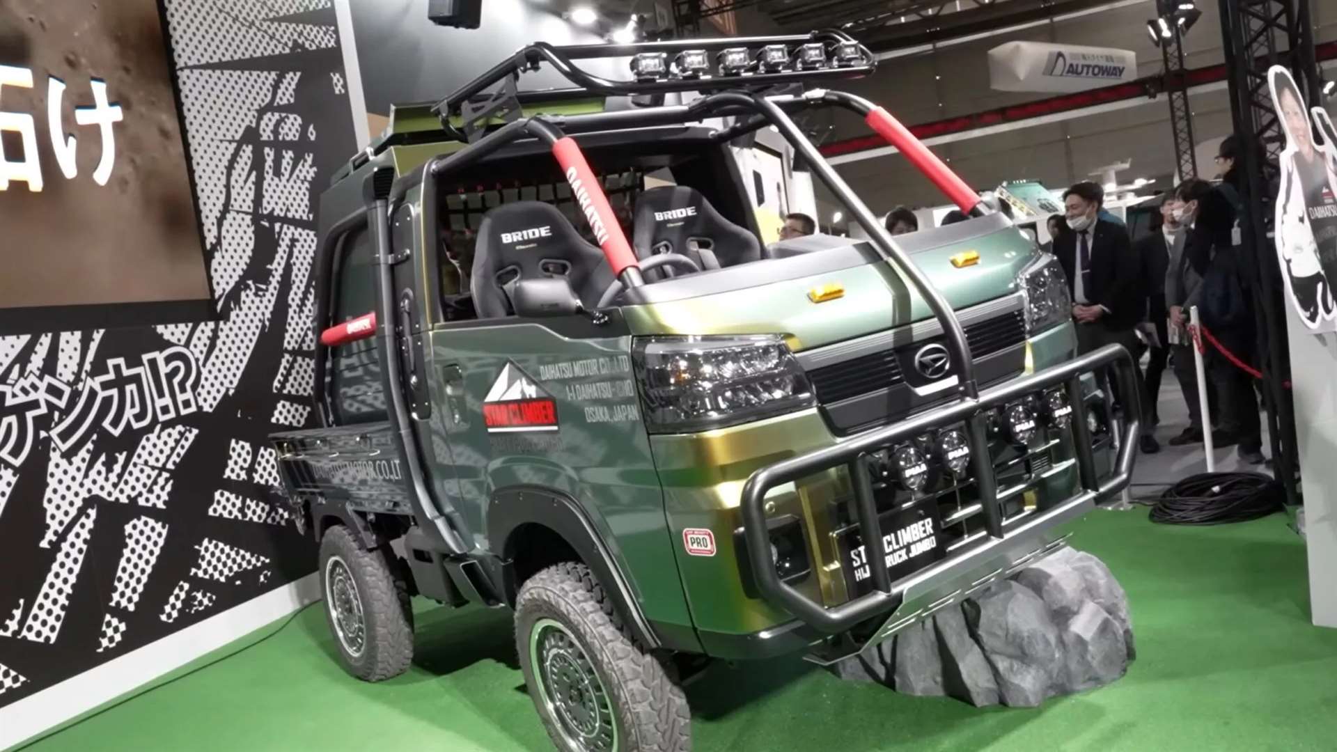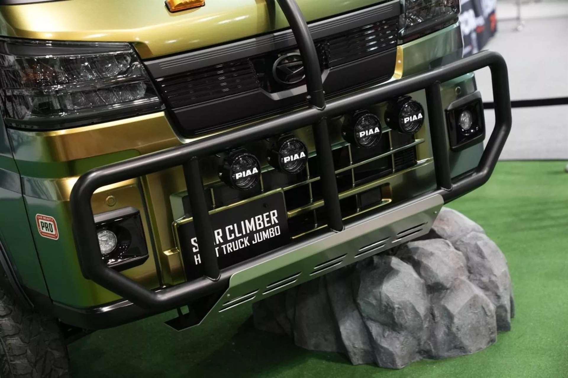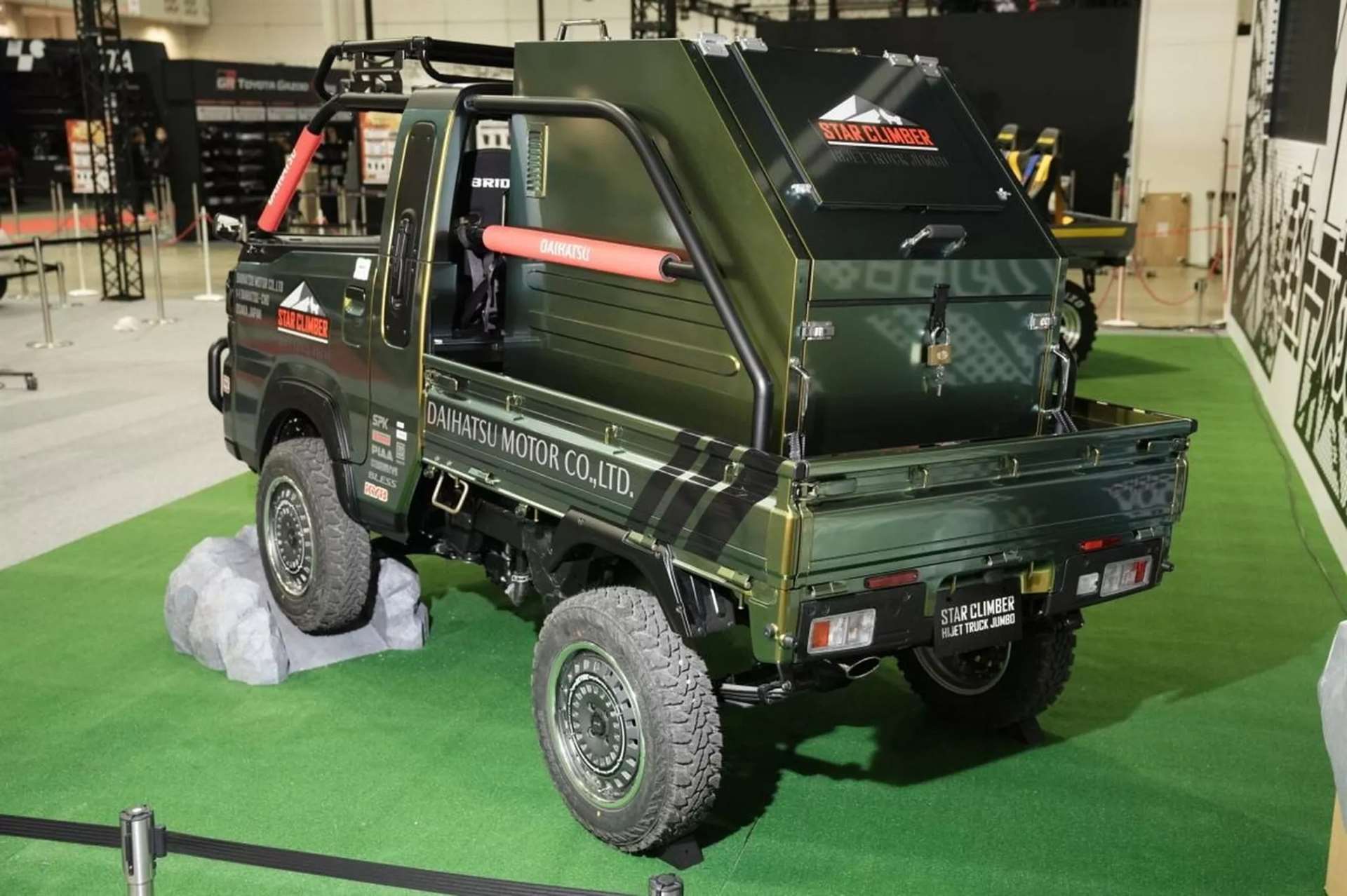 من الجانب الآخر، جاءت دايهاتسو بشاحنة قوية و متعددة المهام، أسمتها Hijet Jumbo Star Climber. تصميمها يجمع بين الجمال العملي والطابع العسكري.