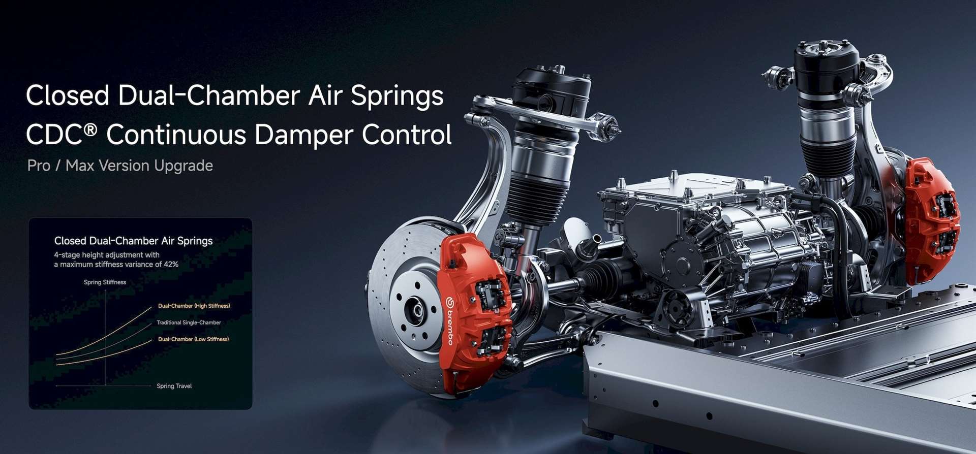 أحد أبرز الابتكارات الجديدة هو نظام التعليق المسمى “Dragon Chassis” أو “هيكل التنين”، الذي يجمع بين نظام تعليق هوائي مزدوج الغرف مع نظام تحكم مستمر بالتخميد (CDC).