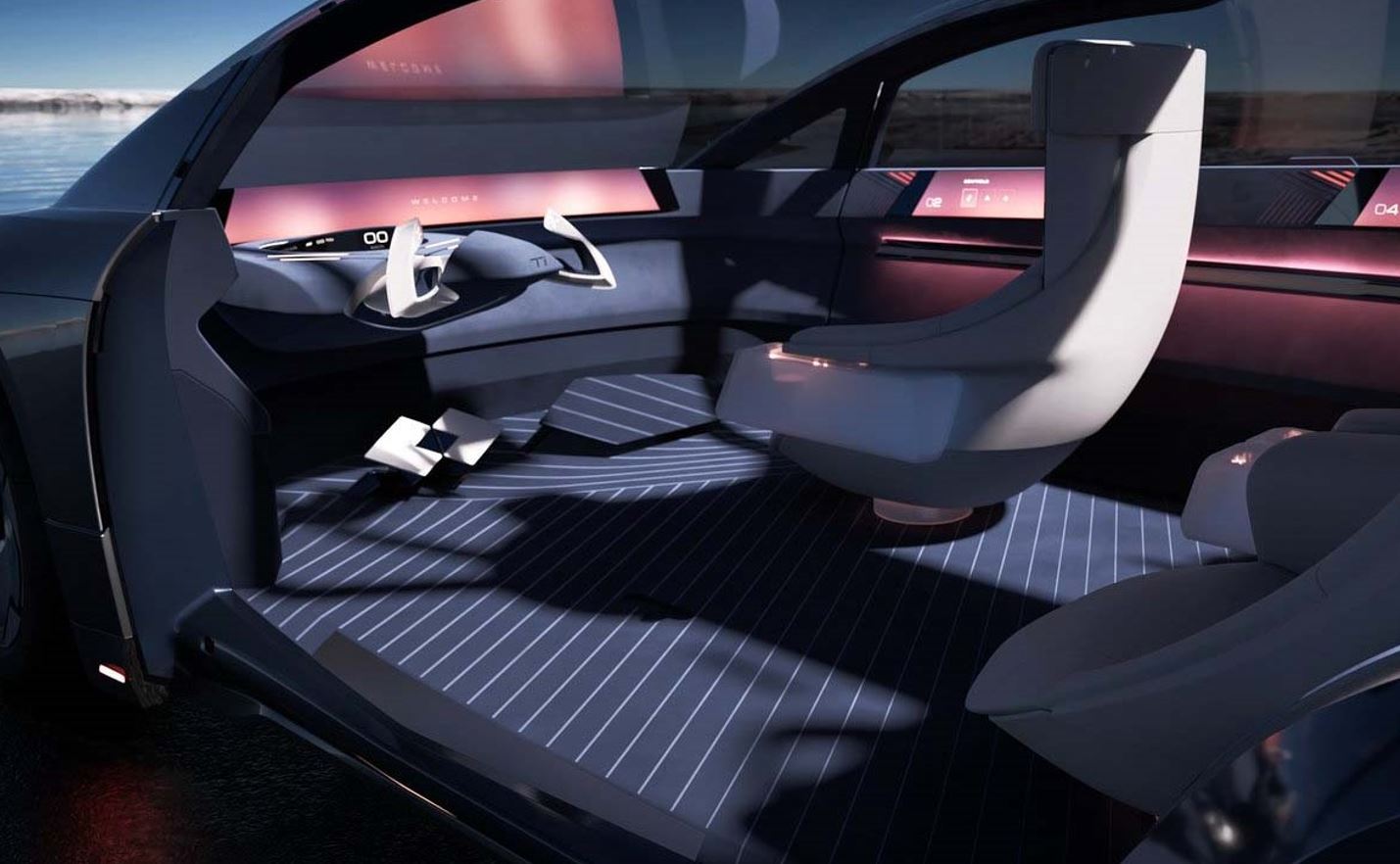 — وتُستبدل المرايا التقليدية بمقابض أبواب وكاميرات جانبية مسطحة ،
