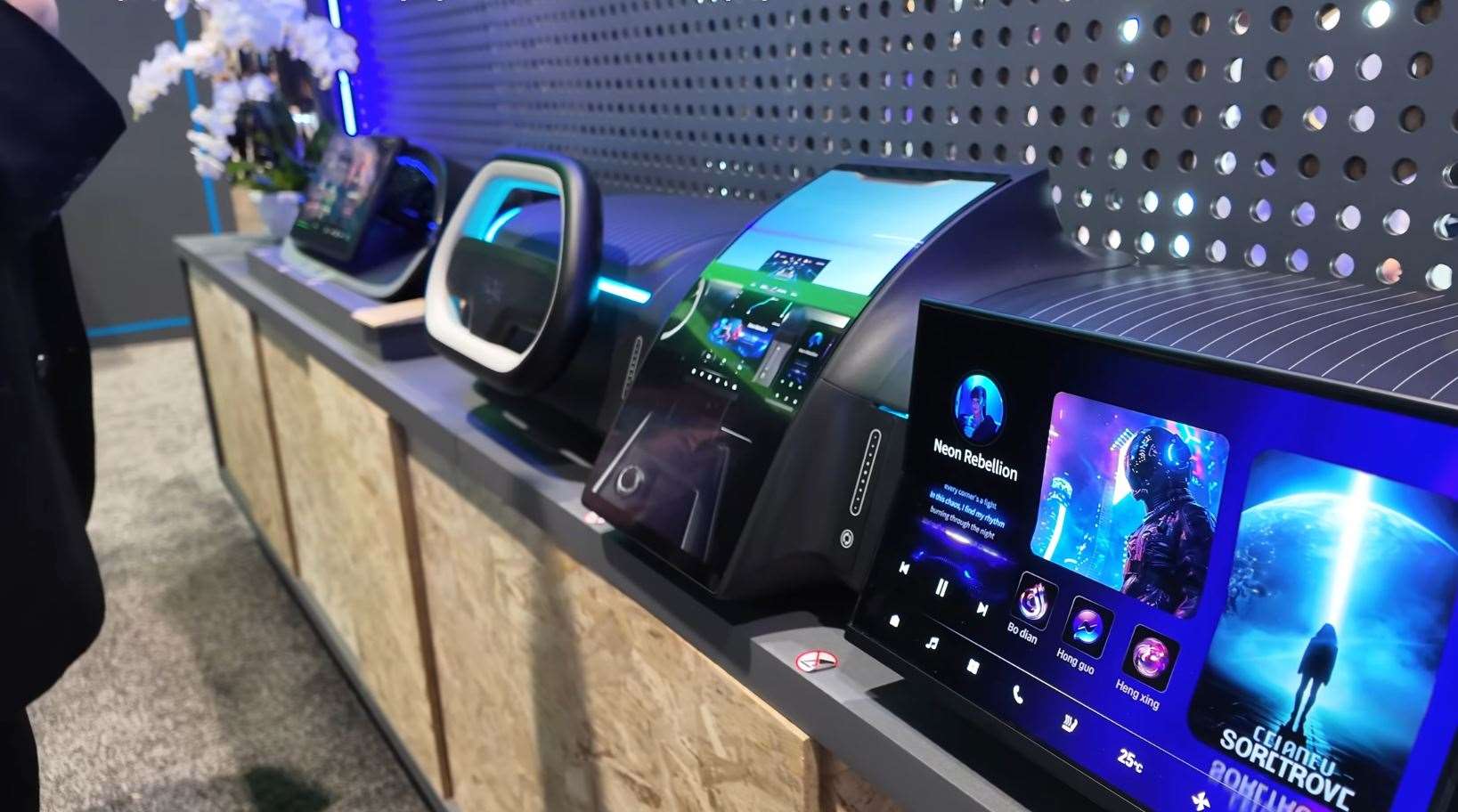 شاشات الـ OLED المرنة: تتيح لمصممي السيارات ابتكار أشكال هندسية لم تكن ممكنة سابقاً، حيث يمكن للشاشة أن تنحني لتناسب تصميم التابلوه.