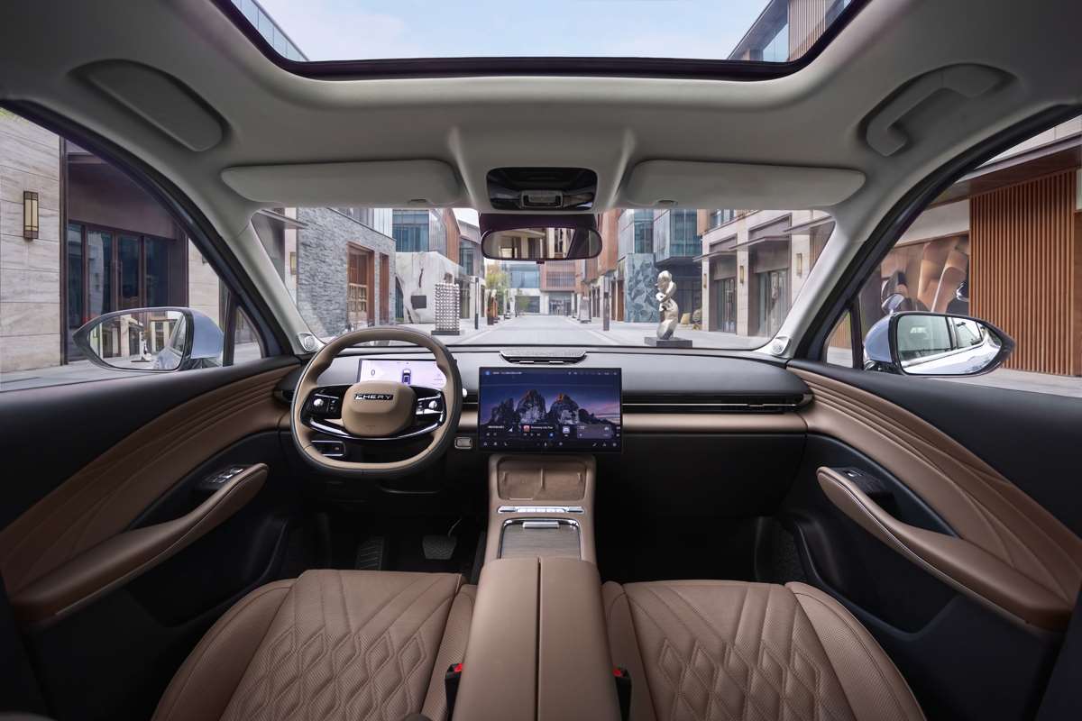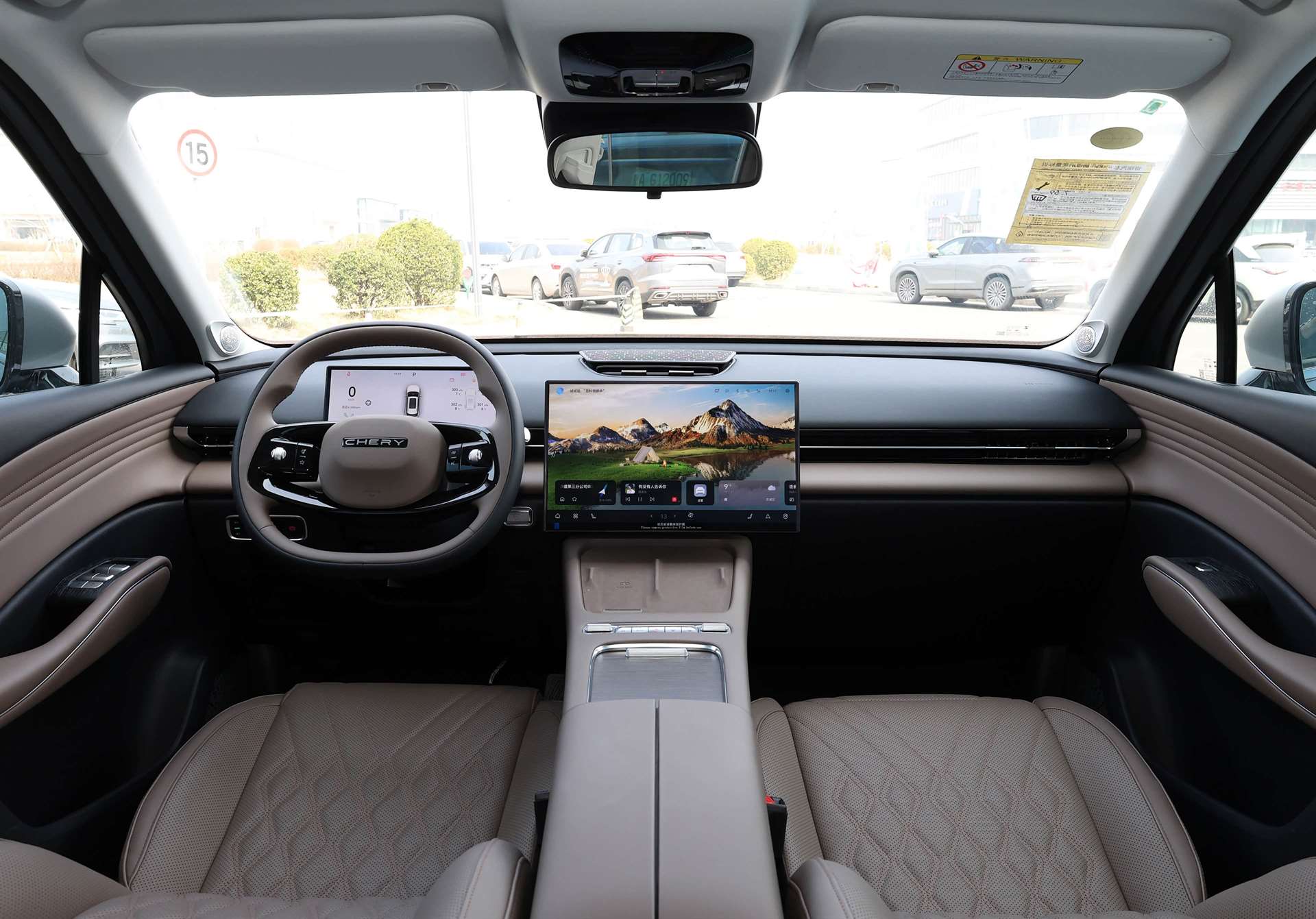 من الداخل، تفاجئ شيري تيجو 7L المستخدمين بلمسة عصرية و مجموعة واسعة من الأنظمة الذكية. الشاشة المركزية بحجم 15.6 بوصة ترافقها عدادات رقمية بقياس 10.25 بوصة، و يشغل هذه الأنظمة معالج قوي من نوع Snapdragon 8155، ما يجعل تعامل النظام سلسًا و سريعًا.
