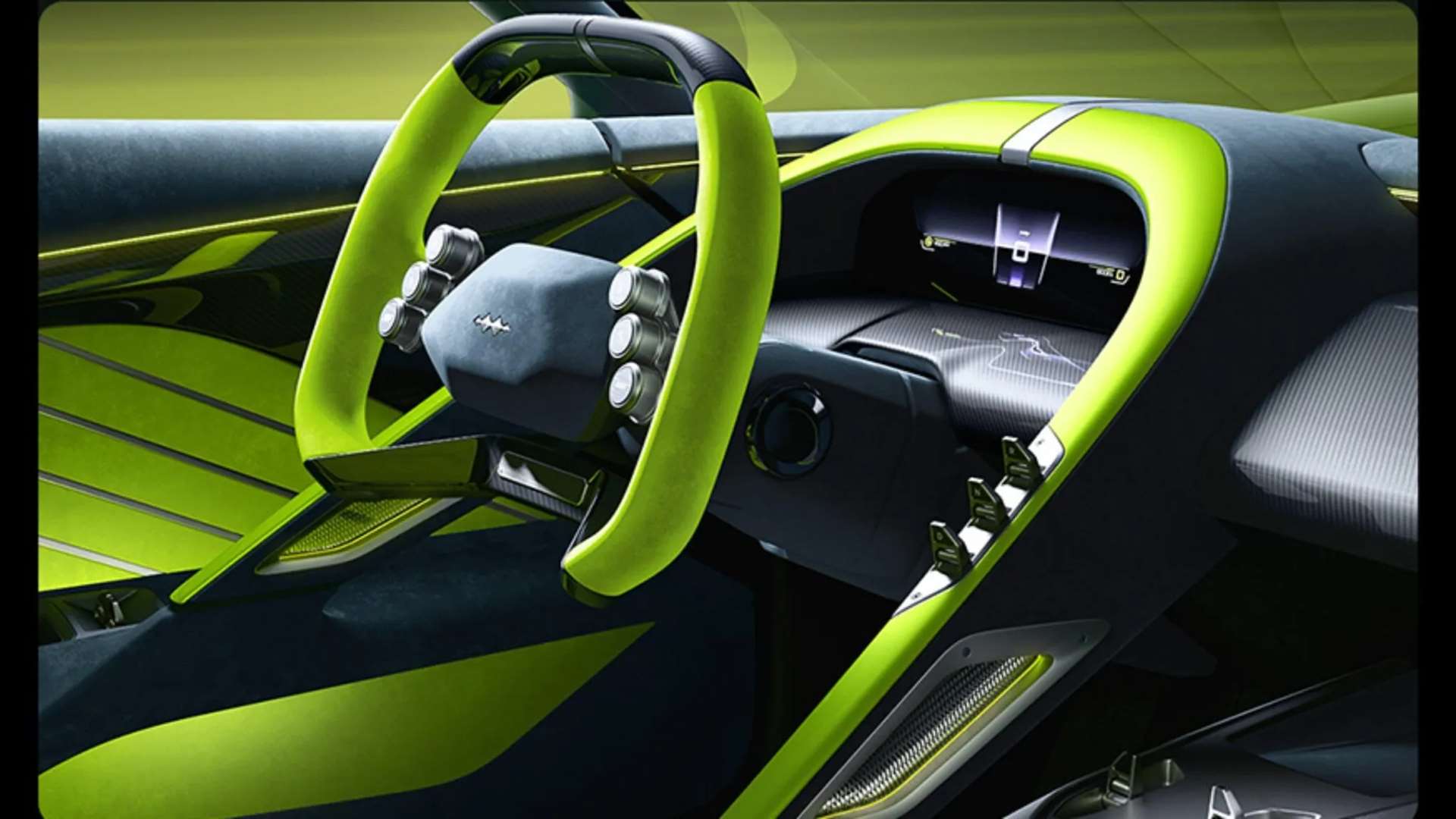 الألوان الرمادية مع لمسات خضراء تعزز الطابع التكنولوجي، بينما المقاعد الرياضية المدمجة مزودة بأحزمة أمان رباعية النقاط لتجربة قيادة حقيقية على الحلبات.