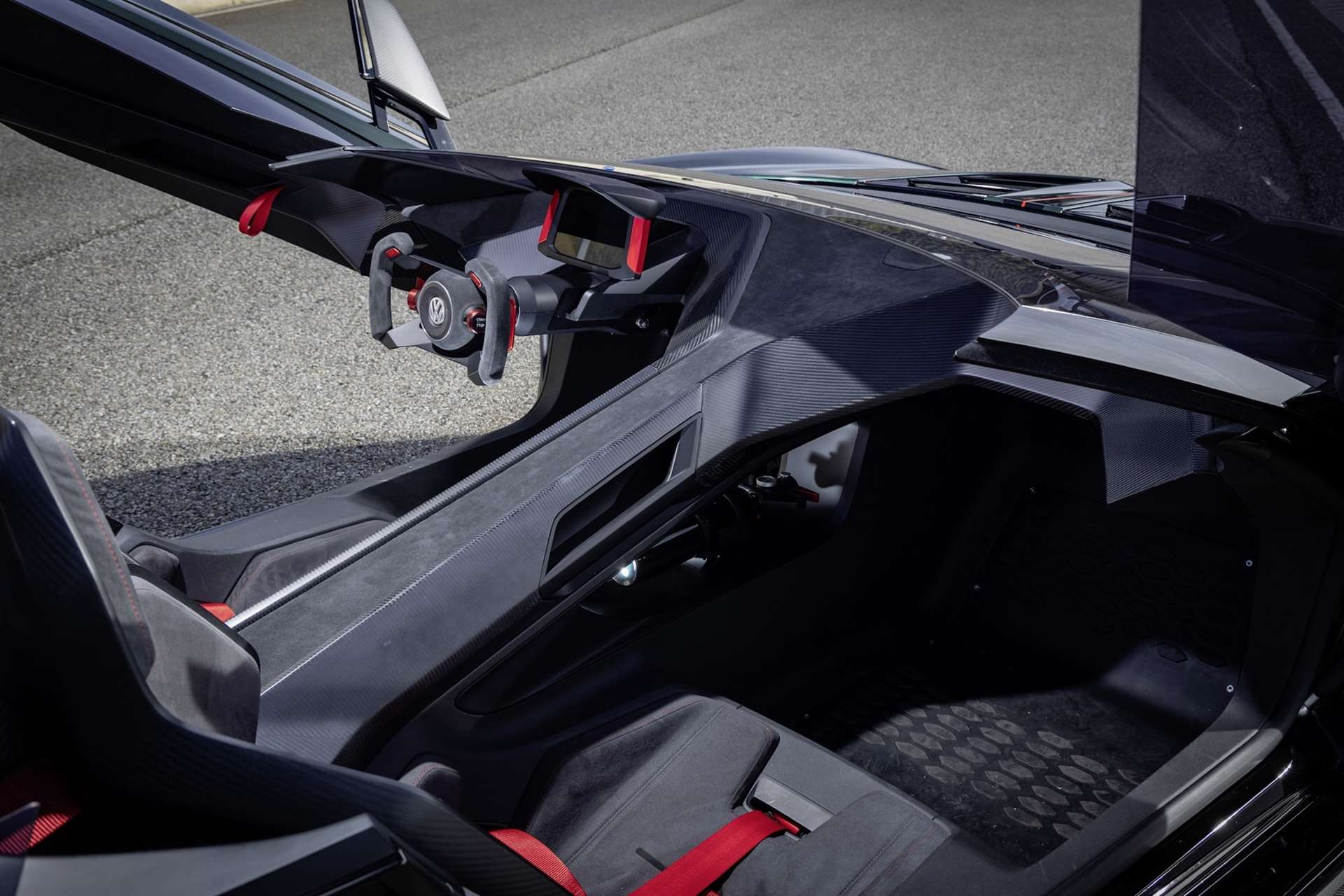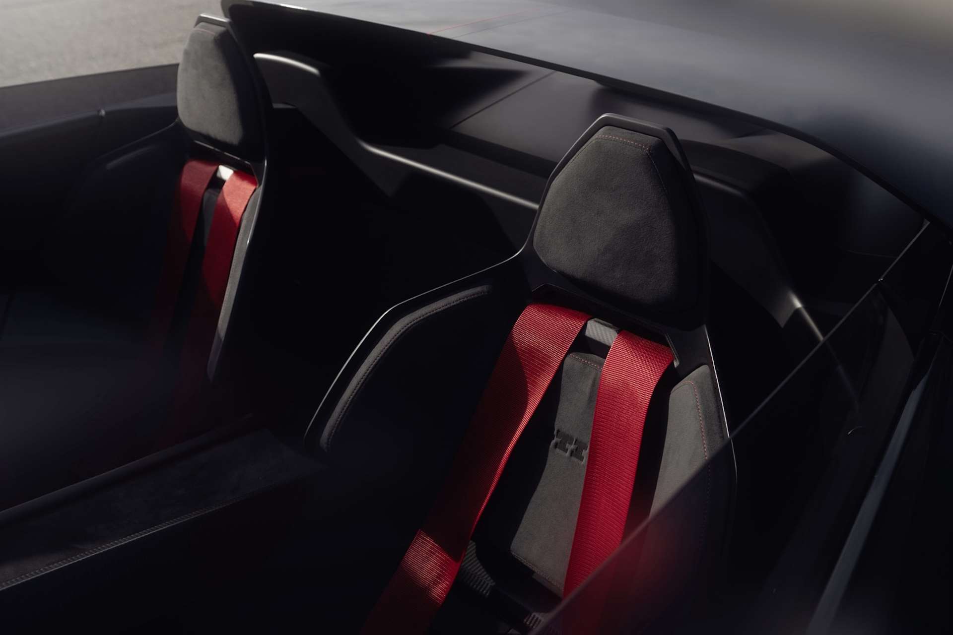 في الداخل، نرى مقاعد سباقية ثابتة مزودة بأحزمة أمان خماسية النقاط، مع توظيف مكثف لألياف الكربون و ألكانتارا. المقود مكسو بألكانتارا أيضًا، و تظهر العدادات بأسلوب مستوحى من سيارات السباق الاحترافية، ما يعزز الشعور بأنك داخل سيارة مخصصة لسباقات التحمل.