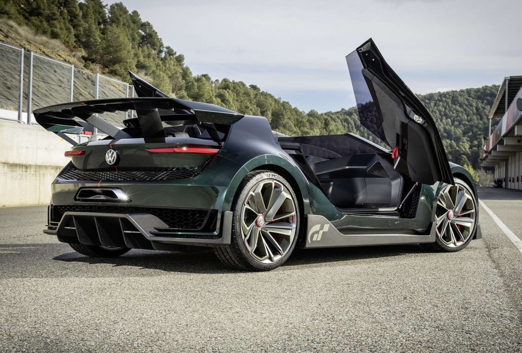 الجناح الخلفي الكبير يعزز القوة السفلية، بينما تحمل الواجهة الأمامية ملامح مستقبلية مستوحاة من هوية GTI الكلاسيكية و لكن بروح سباقية متطرفة.