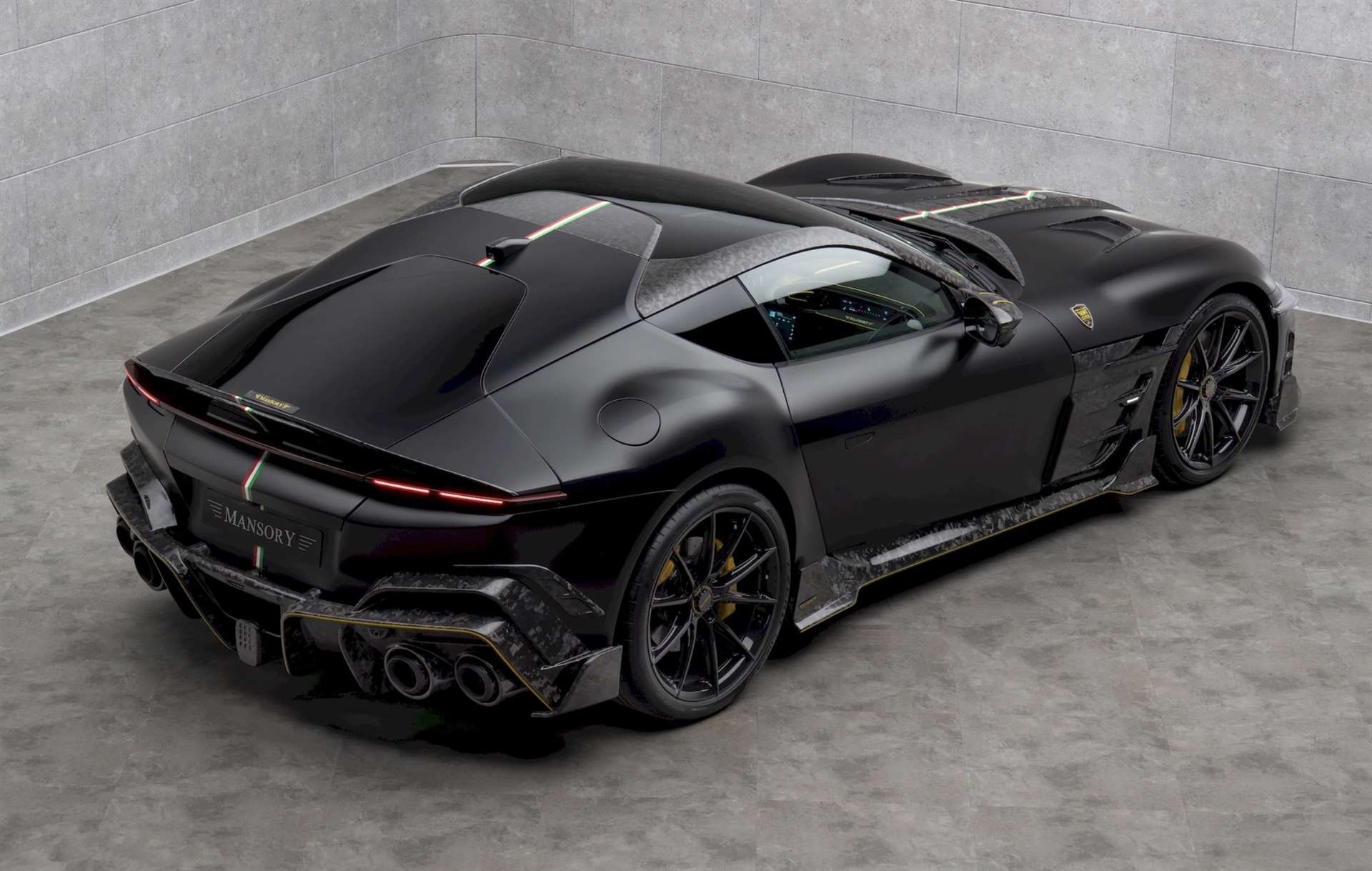 - امتدت شريحة من ألياف الكربون المدمجة بعلم إيطاليا بالألوان الثلاثة الأخضر و الأبيض و الأحمر من غطاء المحرك إلى السقف، و انتهاءً بالصندوق الخلفي و المصد الخلفي