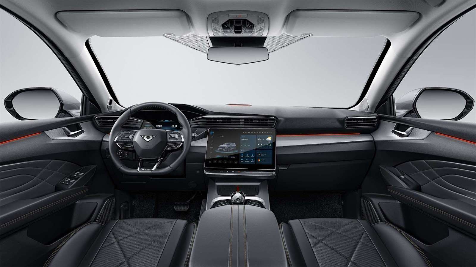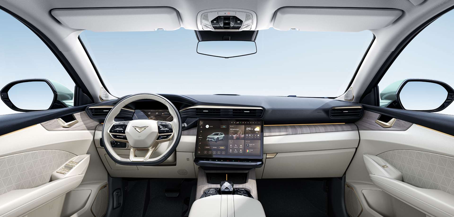 - الراحة و الرفاهية: تشتمل المقصورة على فتحة سقف بانورامية عملاقة، نظام إضاءة محيطية (Ambient Light) بألوان متعددة، و تكييف هواء أوتوماتيكي ثنائي المناطق مع فتحات تهوية مخصصة لصفوف المقاعد الخلفية لضمان راحة جميع الركاب.
