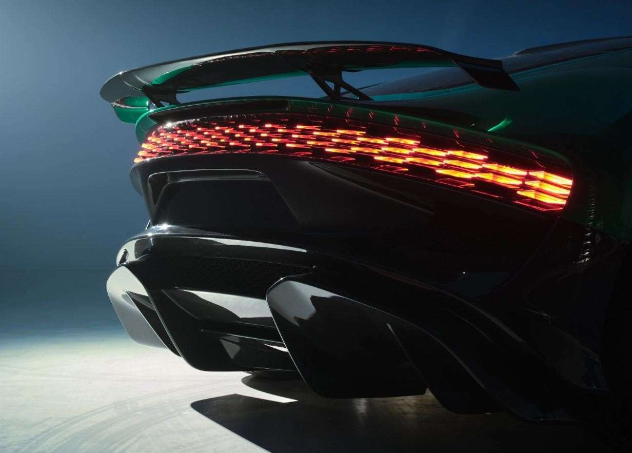 - تشمل التجهيزات جناح خلفي ثابت، ناشر هواء مزدوج، و أنوار خلفية تمتد بعرض السيارة شبيهة بسيارة بوجاتي ديفو