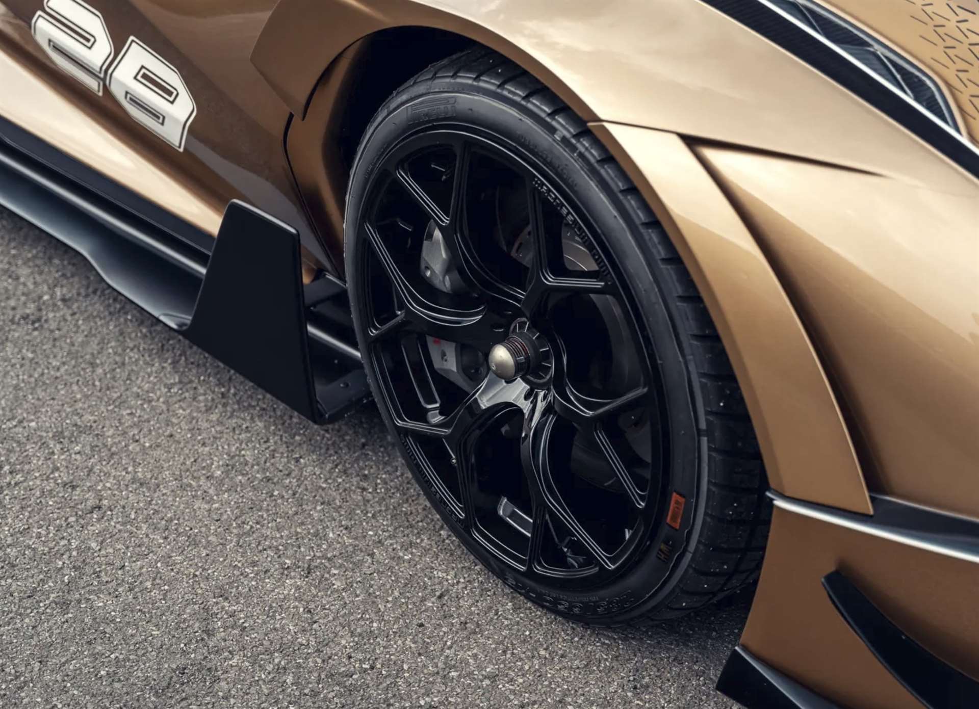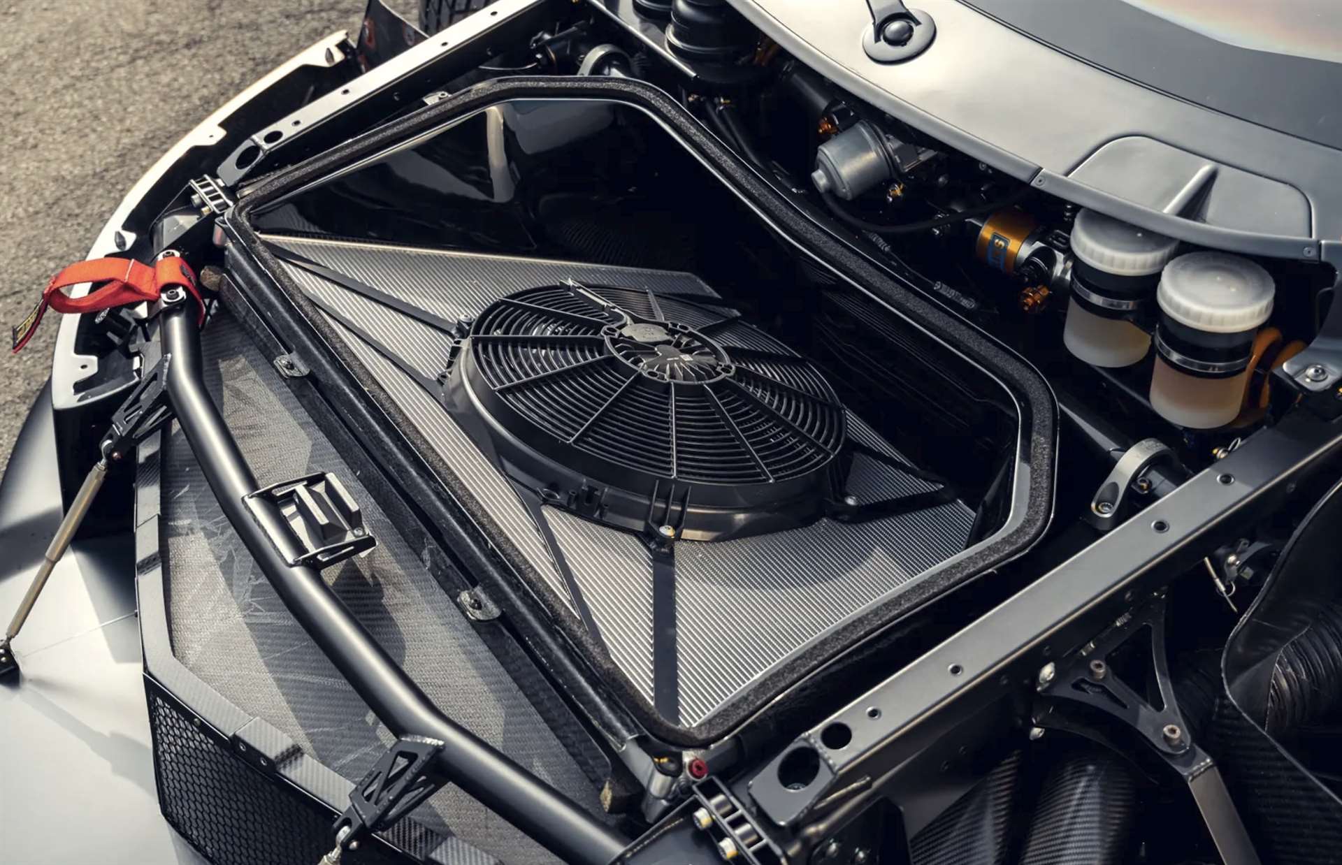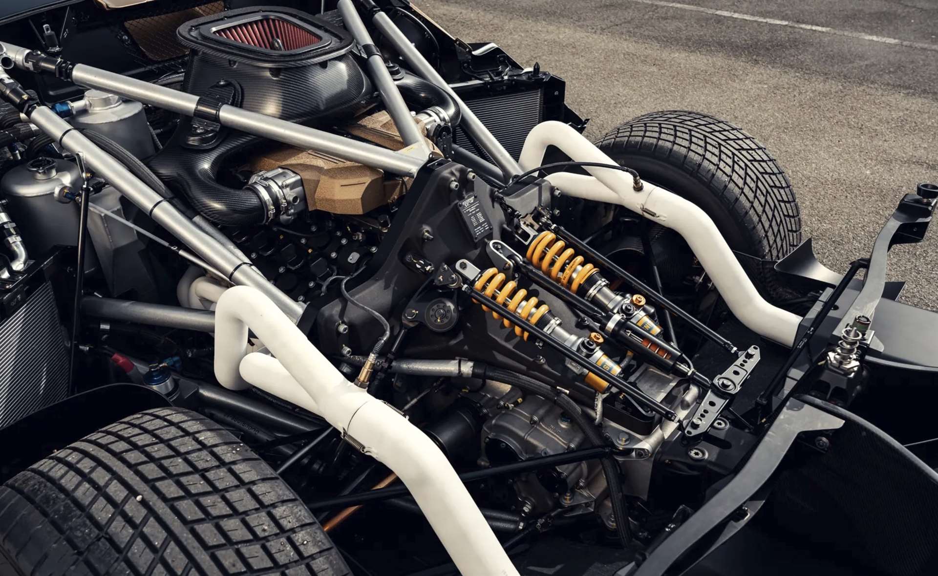 نظام التعليق تم تركيبه مباشرة على علبة التروس لتحسين التوازن و الاستجابة، أما الديناميكية الهوائية، فهي قصة أخرى تمامًا. التصميم ينتج قوة ضغط سفلية تفوق حتى سيارات GT3 الاحترافية لك ان تتخيل أن الغطاء الأمامي يوجه الهواء بدقة نحو سقف السيارة حيث يوجد مجرى ضخم لتغذية المحرك بالهواء