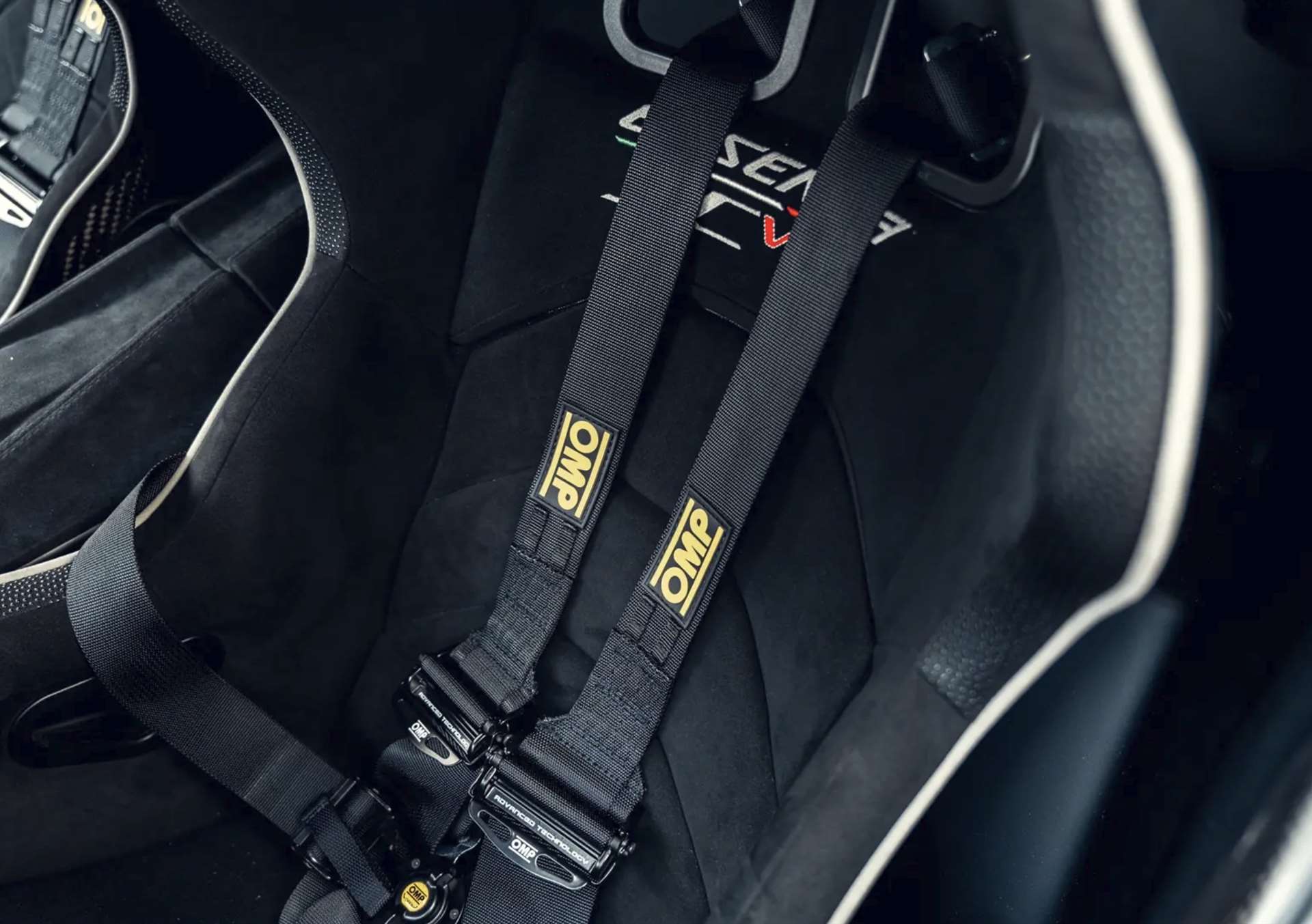 – مقاعد OMP مصنوعة من ألياف الكربون، مزودة بأحزمة أمان سباقية.