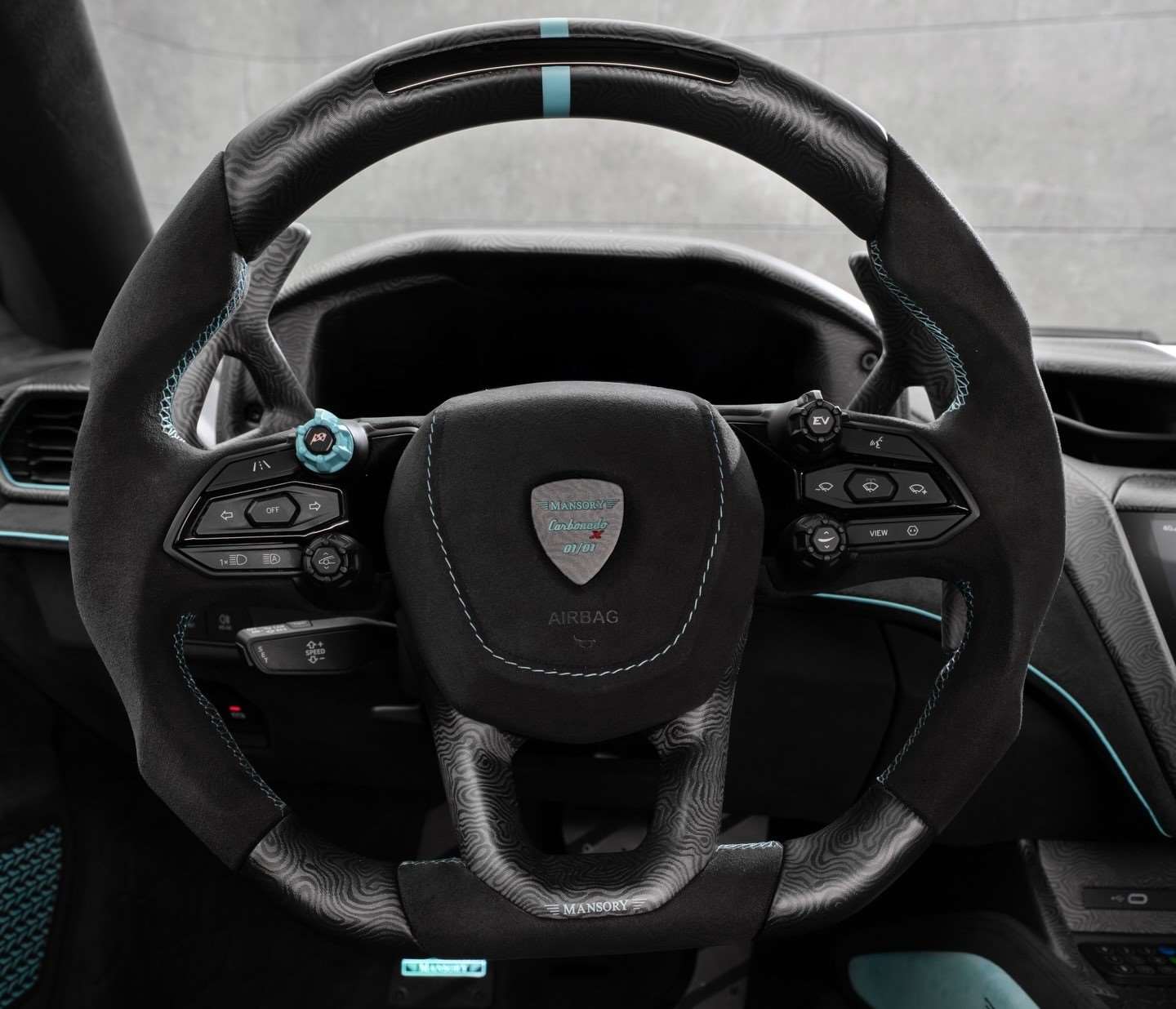 أما في الداخل، فإن الفخامة تتجلى بتفاصيل متميزة، بدءًا من المكابح بلون الفيروز الفريد إلى ألوان ألكانتارا الداكنة و الأبواب المضاءة بشعار منصوري المضيء. إلى جانب التحسينات البصرية،