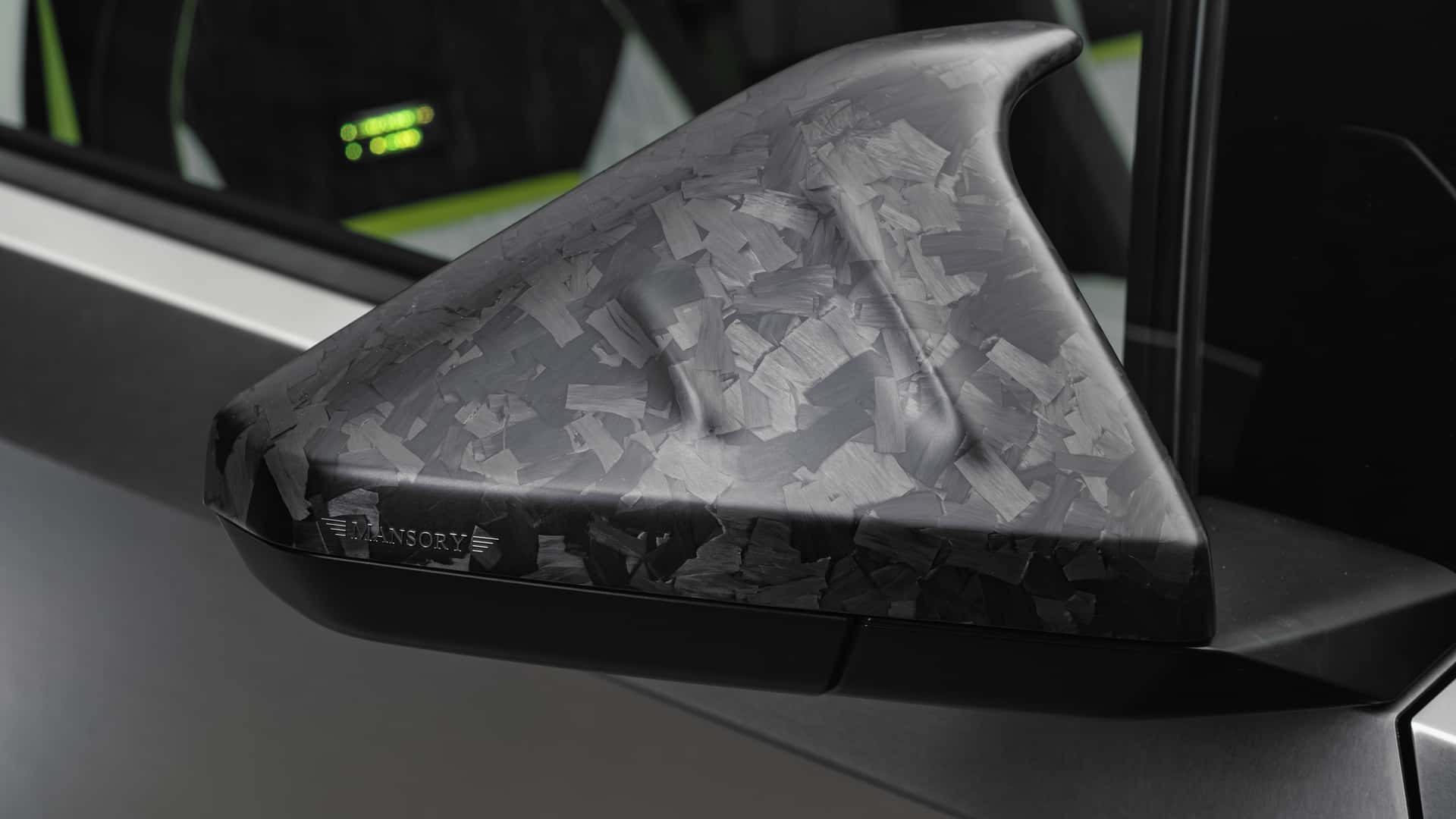 - شعار مانصوري المضيء يتصدر واجهة السيارة على لوح كربوني ضخم.