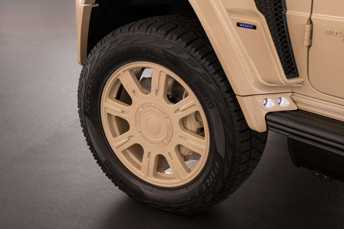 تسير على عجلات ضخمة بقياس 22 إنش مغلفة بإطارات 325/55، و لديها نظام تعليق خاص مطلي بنفس لون الهيكل، يضبط إلكترونيًا حسب الحاجة.