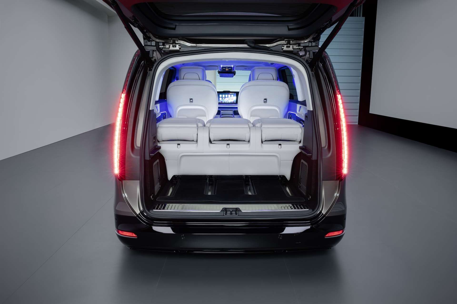 داخل المقصورة، يتحول كل شيء إلى عرض فني متقن الحركة! فـمرسيدس VLE تتسع حتى ثمانية ركاب موزعين على ثلاث صفوف، و يمكن اختيار نظام الجلوس “Seat Ballet” الذي يحرك المقاعد كهربائياً بطريقة متناغمة، بإشراف تطبيق مرسيدس أو عبر شاشة النظام.