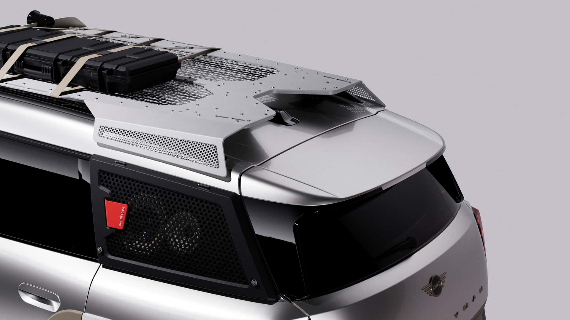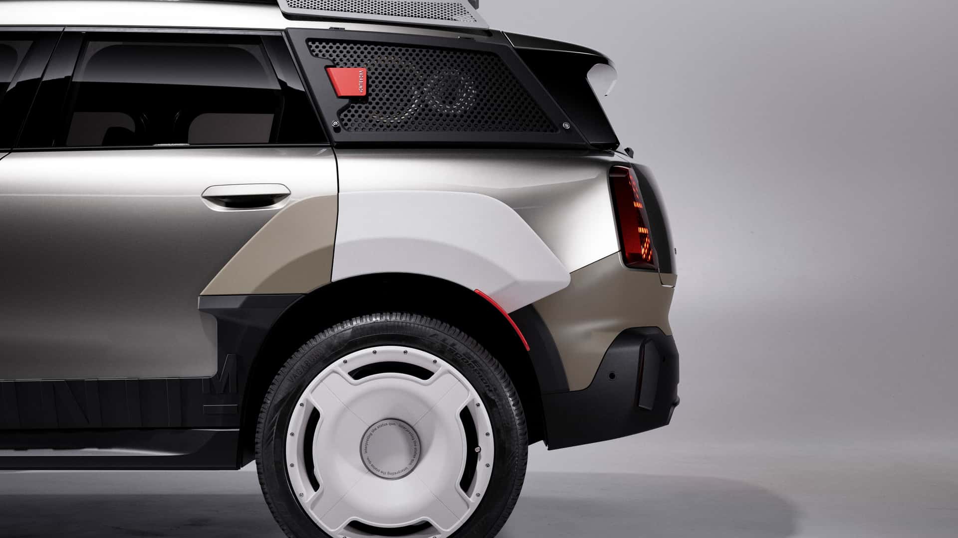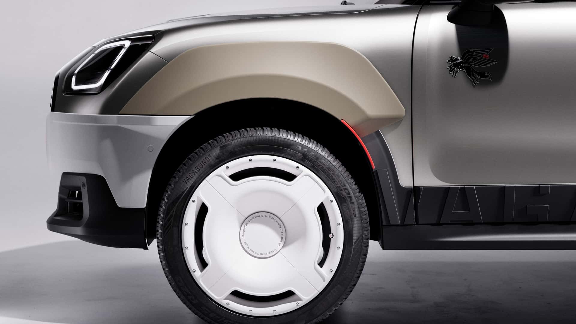 في هذه النسخة الخاصة، ركزت ميني على جعل السيارة نفسها منصة صوتية متكاملة. تم رفع ارتفاع السيارة قليلاً لتبدو أكثر جاهزية للمغامرات، و زودت بعجلات ضخمة قياس 20 بوصة مزودة بأغطية إيروديناميكية مطبوعة بتقنية ثلاثية الأبعاد. أما الطلاء، فهو أحادي اللون مع تفاصيل و شعارات فريدة تبرز هوية Vagabund على الجسم الخارجي.