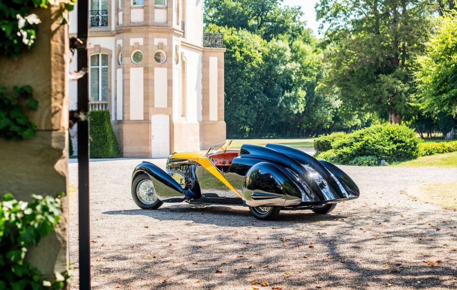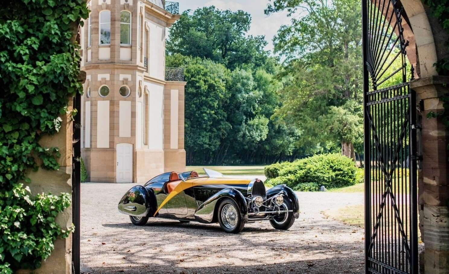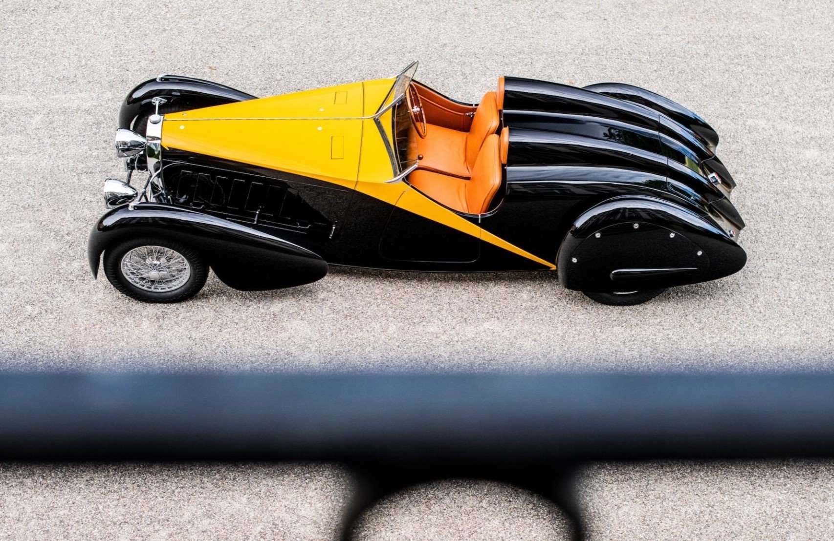 لكن لنتحدث عن نجمنا الحقيقي هنا: بوجاتي Type 57 رودستر جراند رايد، و هي نسخة أُطلقت لأول مرة في معرض السيارات بباريس في أكتوبر 1934. في ذلك الوقت، كانت بوجاتي لا تزال تحمل طابعها الفرنسي الراقي، رغم أن المدينة التي تأسست فيها مولشيم كانت تحت الحكم الألماني قبل و بعد الحربين العالميتين.