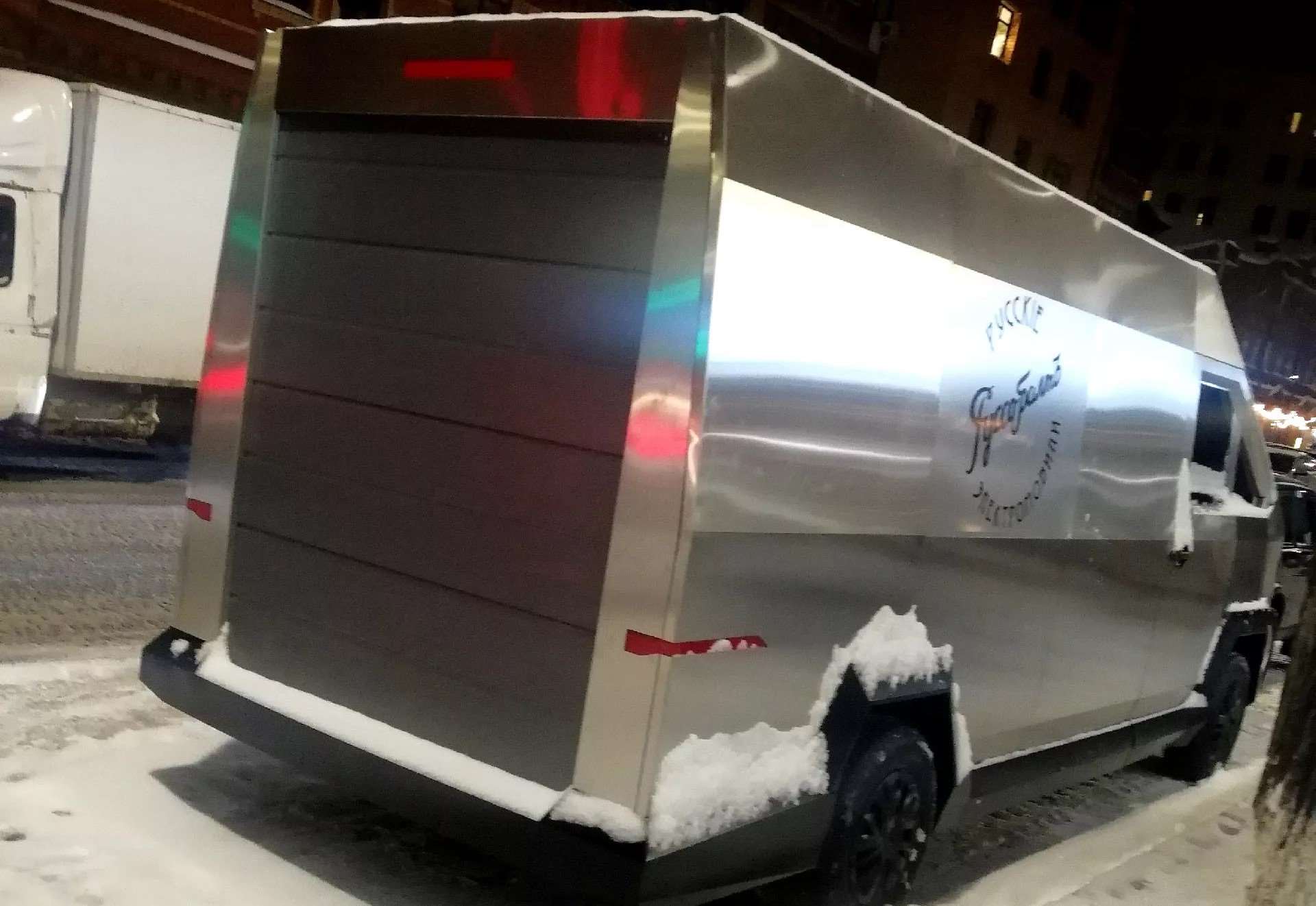 هذه الشاحنة الغريبة اشتهرت على الإنترنت بعد أن تم تصويرها في شوارع بيرم و هي مغطاة بالثلج، بألواح حادة الزوايا تذكرنا فوراً بـ”سايبرتراك” من تسلا. قد لا يكون المعدن المستخدم بنفس قوة فولاذ تسلا المقاوم للخدوش، لكن الشكل الخارجي يكاد يكون توأمًا لها