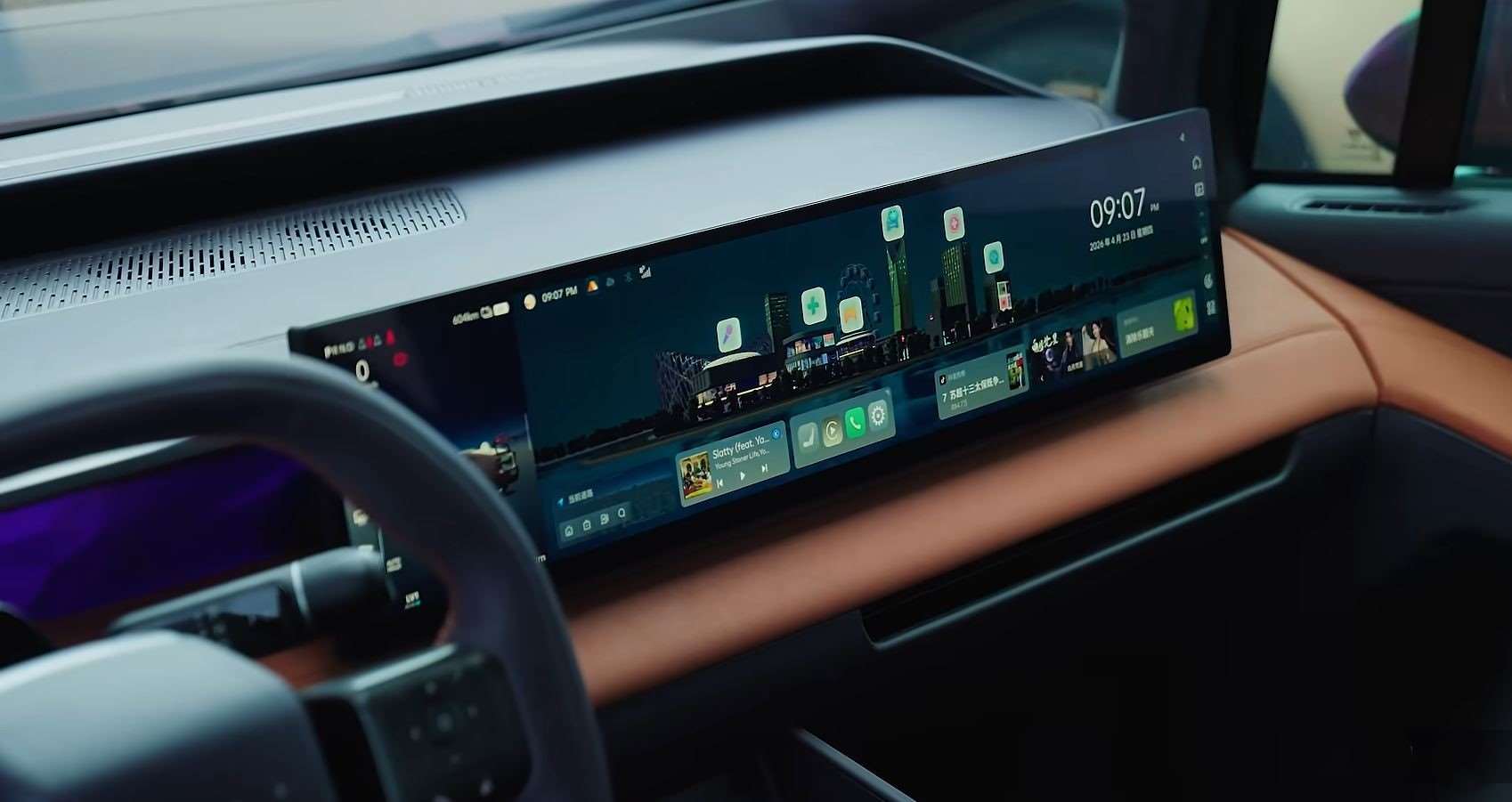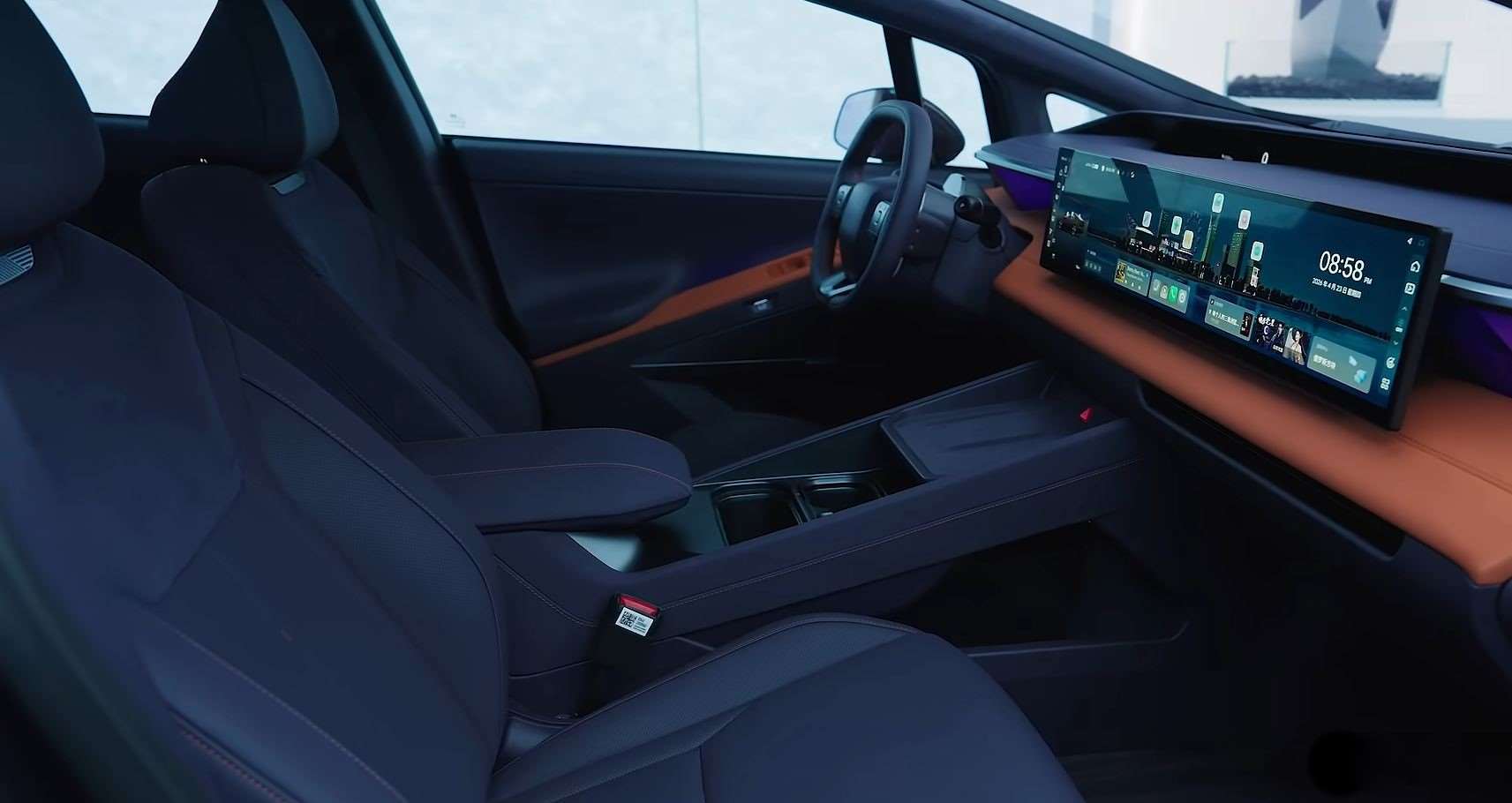 أبرز ما يلفت الأنظار شاشة ضخمة 27 بوصة بدقة 4K، تندمج بسلاسة مع لوحة القيادة، إلى جانب نظام إضاءة ذكي و HUD متطور أطلقت عليه الشركة اسم Cyber Eye يعرض المعلومات بطريقة مستقبلية تشبه الألعاب الرقمية.