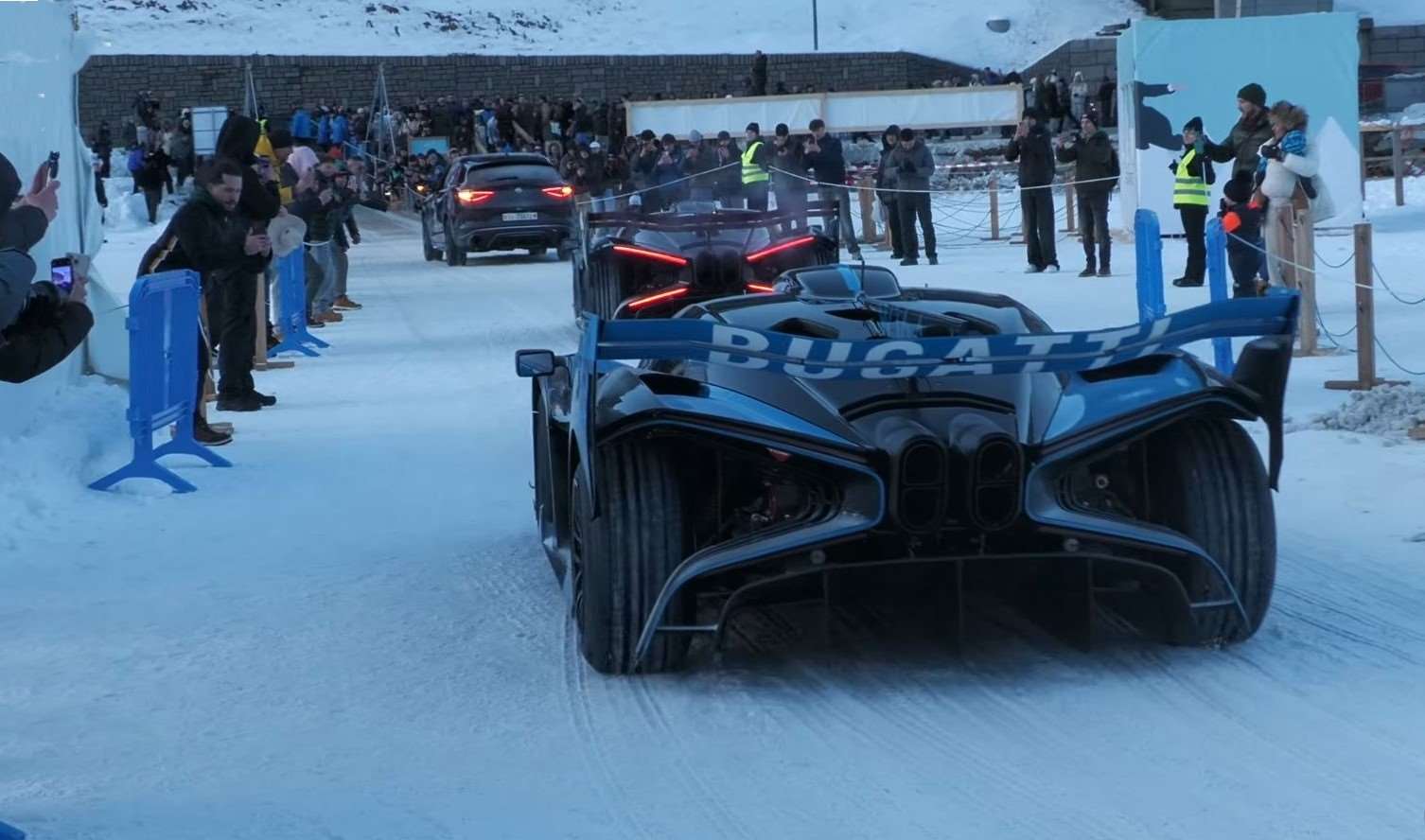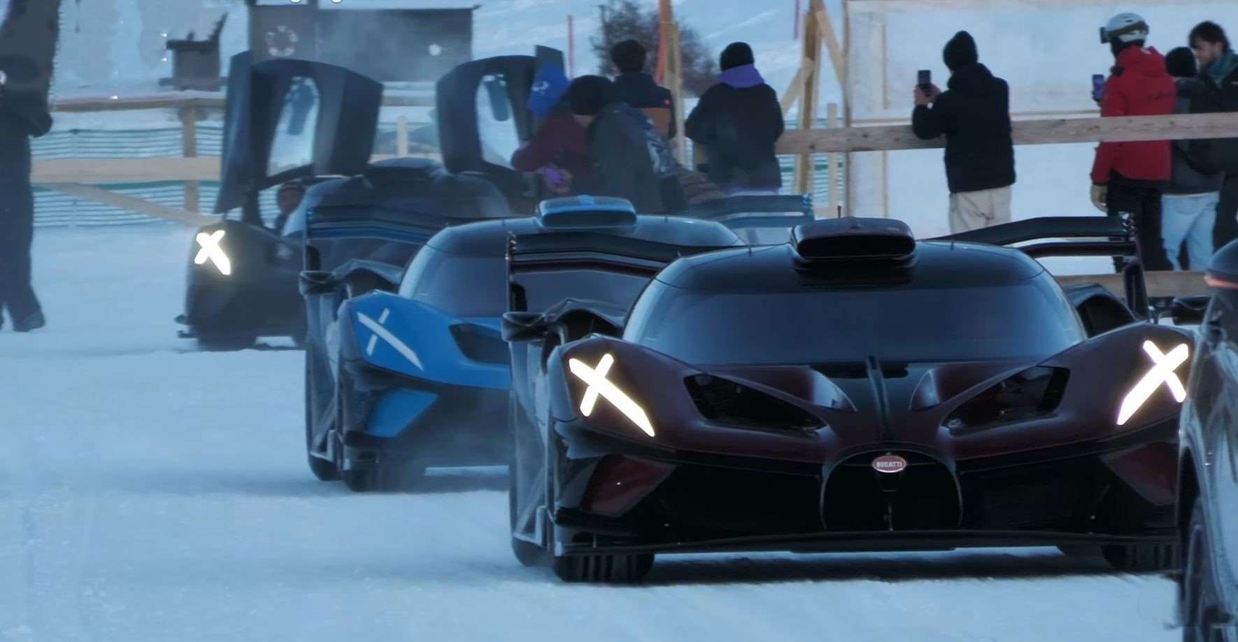 اجتماع ثلاث سيارات بوجاتي بوليد مع أساطيل كوينيجسيج و باجاني خلق مشهداً سريالياً لن يتكرر قريباً. لقد كانت “سمفونية” ميكانيكية، حيث لعب الجليد دور المسرح، و المحركات دور العازفين،