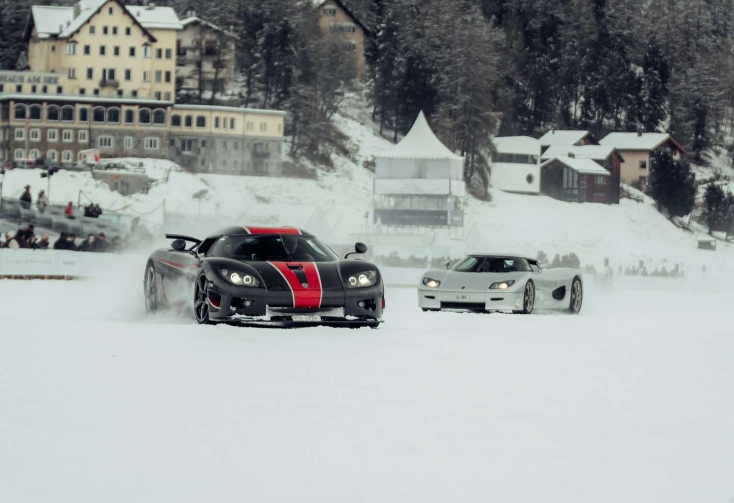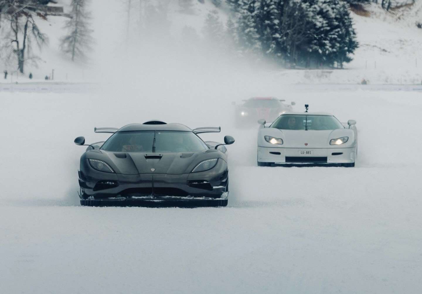 كوينيجسيج جيسكو (Jesko): ظهرت جيسكو بنسختيها (Attack و Absolut) و هي تستعرض سرعتها الجنونية على المسار المستقيم للبحيرة المتجمدة. بمحركها الذي ينتج 1600 حصان عند استخدام وقود E85، كانت جيسكو أسرع سيارة تكسر سكون الثلوج في سانت موريتز.