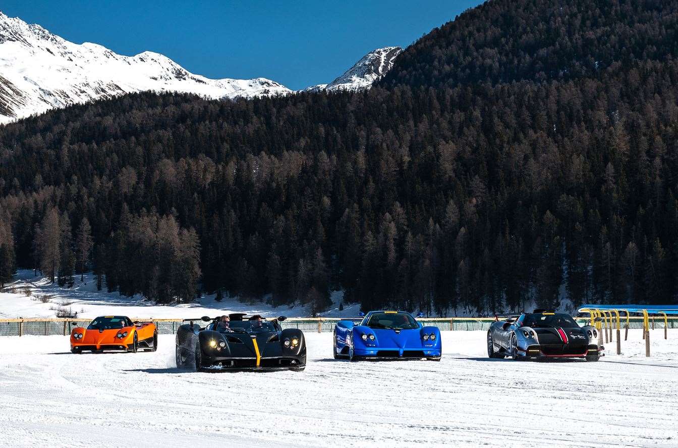 عائلة زوندا (Zonda): شهد المهرجان ظهور نسخ نادرة جداً مثل “Zonda Cinque” و “Zonda F Roadster”. هذه السيارات، رغم قدمها النسبي مقارنة بـ “بوليد”، إلا أن صراخ محركاتها الـ V12 كان يتردد صداه في أرجاء جبال الألب، مما أعاد ذكريات العصر الذهبي للسيارات الخارقة.
