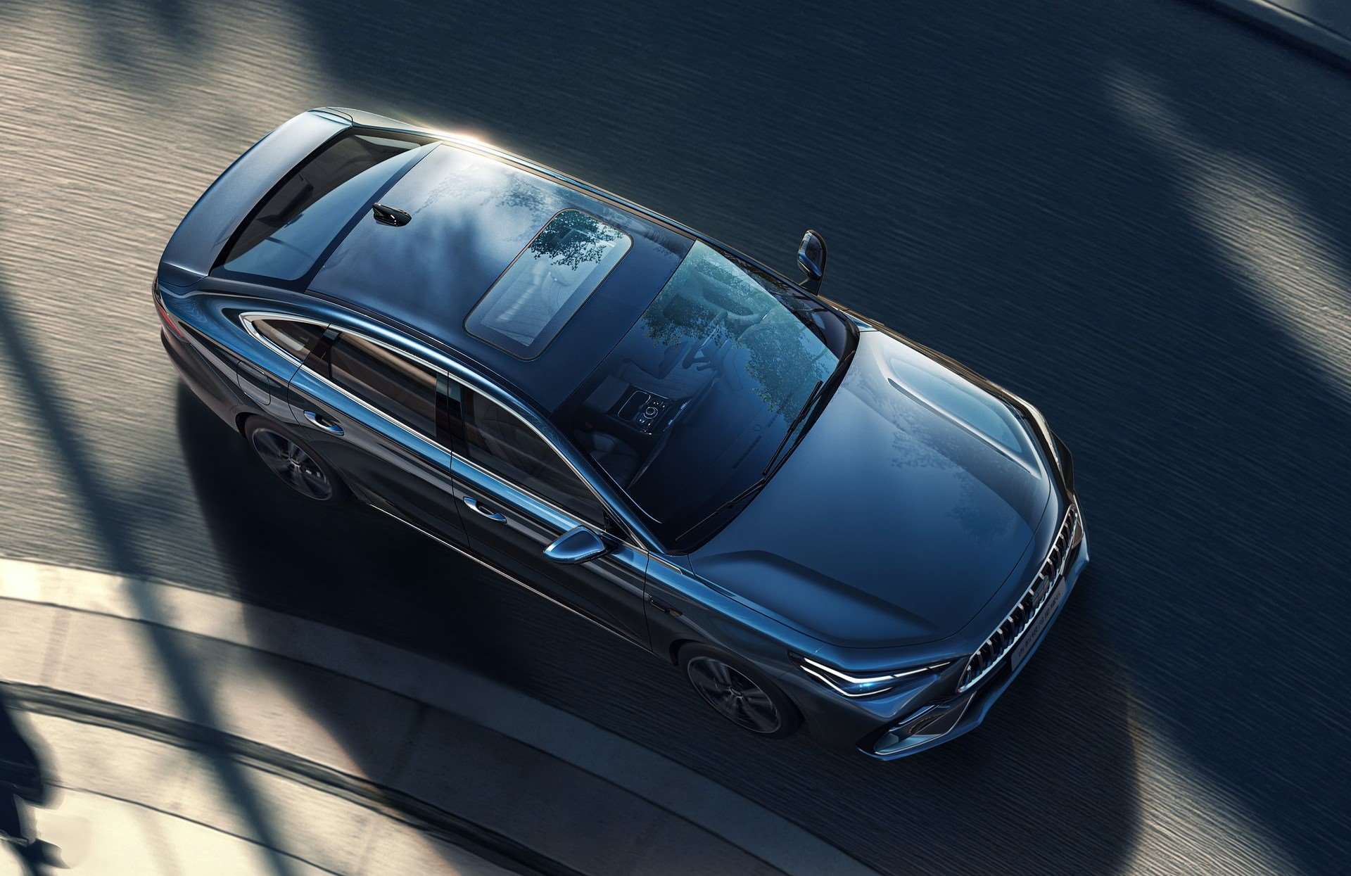 - سقف مائل ولمسات تصميمية كسبويلر “بطّي الذيل” وخط إضاءة خلفي واحد بعرض السيارة.
