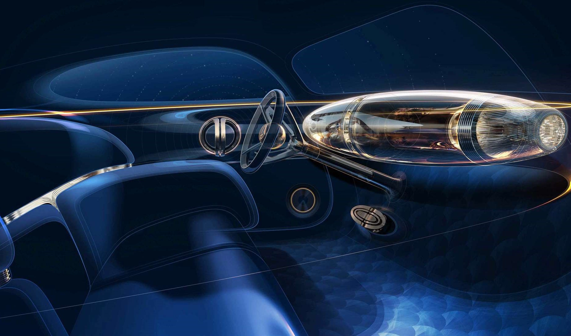 عند النظر إلى الجسم الخارجي للسيارة، تشعر وكأنها خرجت مباشرة من فيلم كلاسيكي له طابع مستقبلي. الهيكل يستحضر بوضوح طراز مرسيدس 540K Autobahn Kurier من العام 1938، بخطوطه المنحنية وغطاء المحرك الطويل.