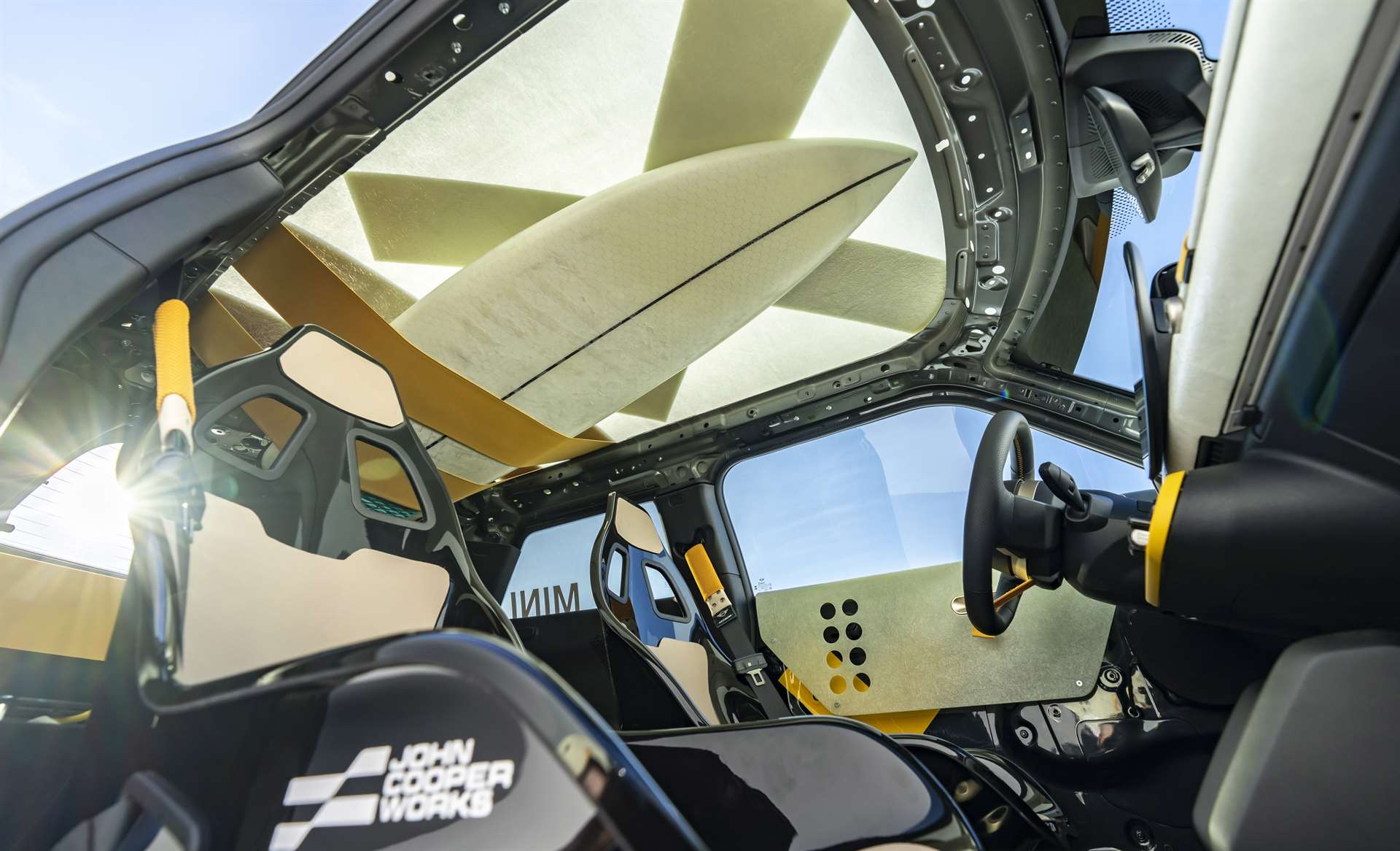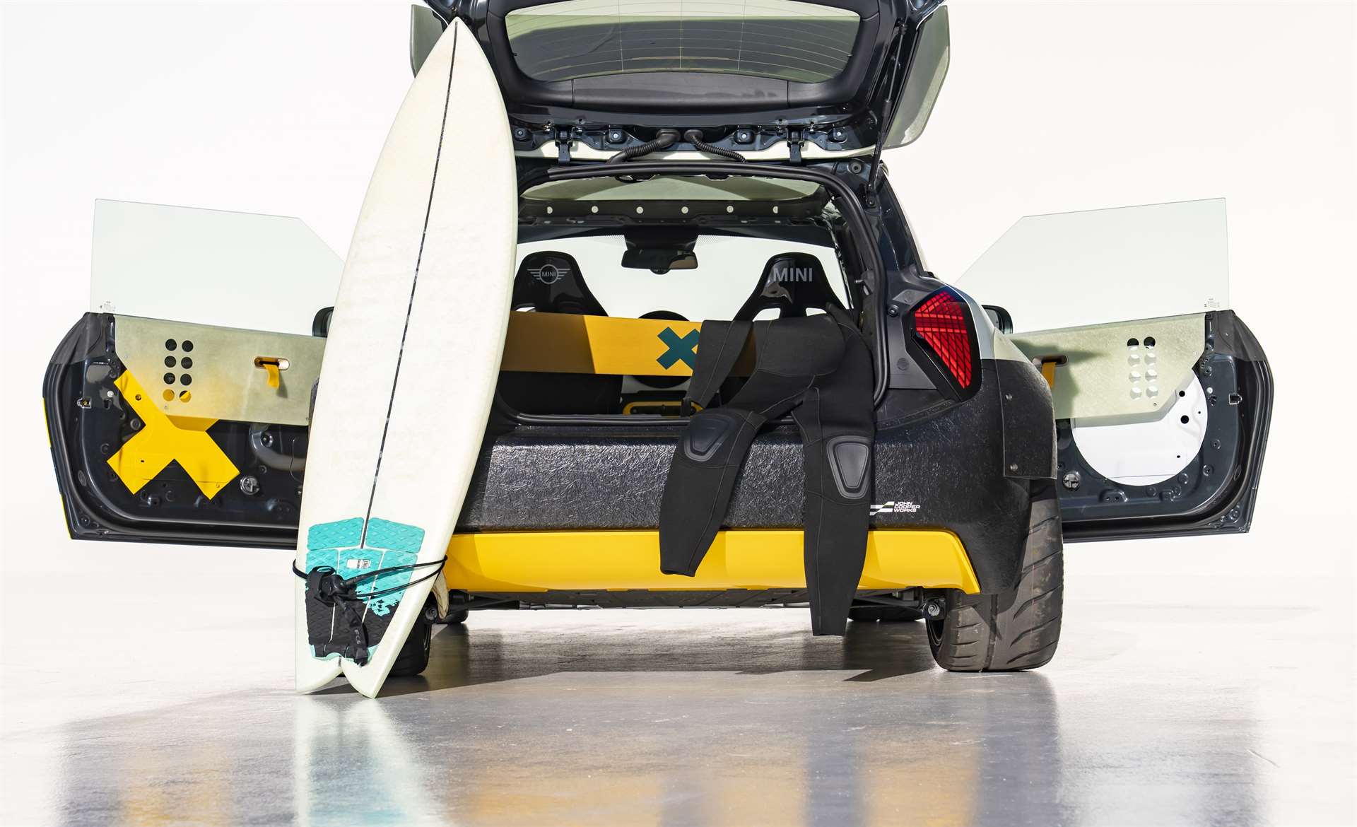 على غير المتوقع من سيارة أداء، تأخذك سيارة Skeg إلى عالم البحر وأمواج المحيط، بعيداً عن صالات السباق. تم بناء هذا المفهوم على نسخة كهربائية بالكامل من ميني JCW، ويقدّم لمحة مستقبلية بلمسة صيفية متمرّدة.