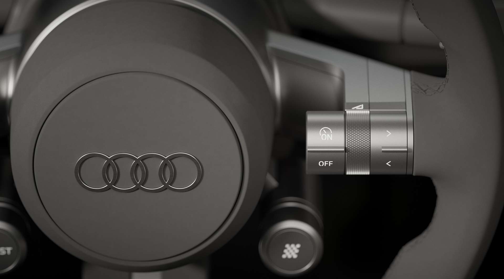 تتميز المقصورة الداخلية بأسطح معمارية قوية وأشكال هندسية واضحة تضمن مساحةً مريحةً للراكبين مع عناصر التحكم من الألومنيوم المؤكسد، و شاشة قياس 10.4 بوصة يُمكن إخفاؤه. وكما هو الحال في طرازات أودي القديمة، تُطوى شاشة نظام المعلومات والترفيه بسلاسة داخل لوحة القيادة. حتى شعار عجلة القيادة مصنوع من المعدن بدلًا من البلاستيك الرقيق