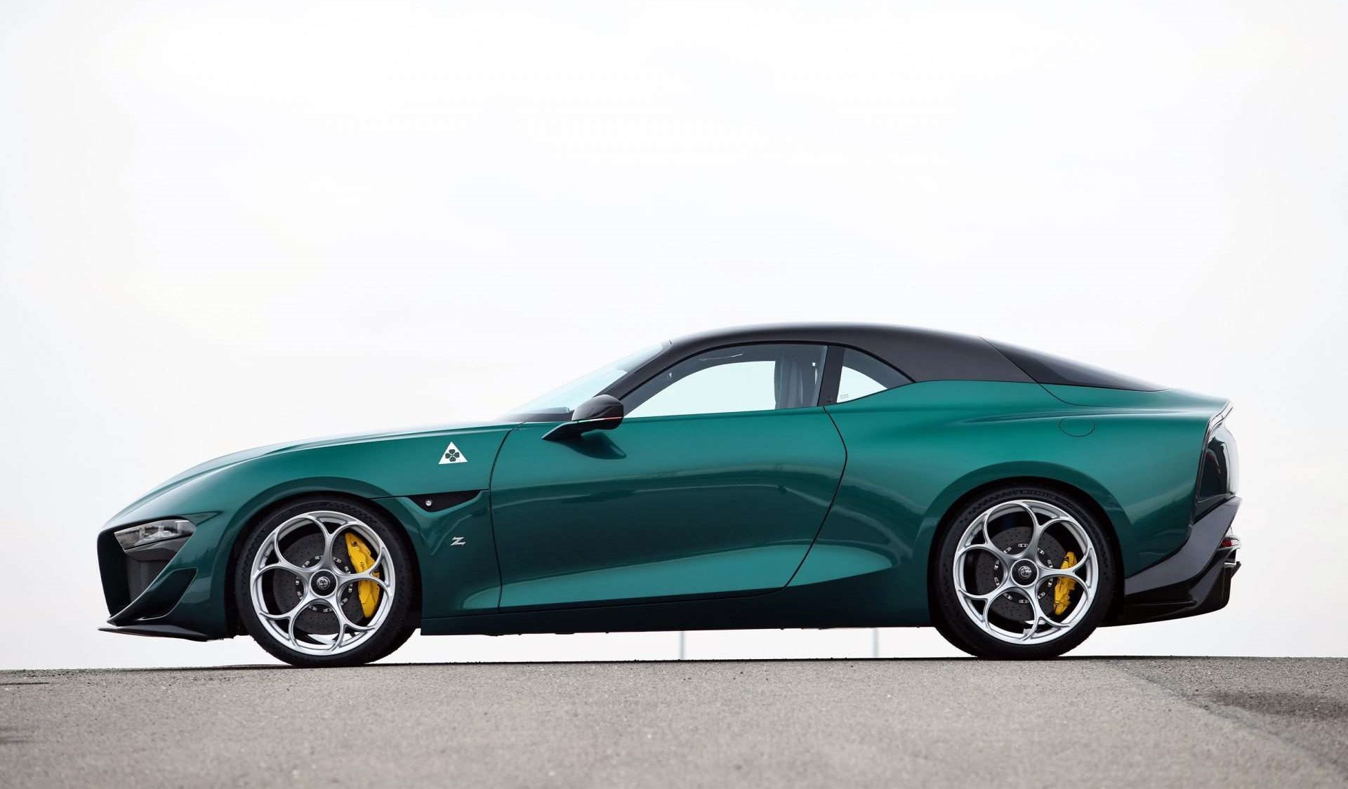 وفي الخلف، يظهر تأثير زاجاتو بوضوح عبر تصميم “ذيل كام” المقصوص، يعلوه شريط ضوء رفيع ممتد على عرض السيارة لمسة حديثة تحيي روح طراز 2600 SZ الكلاسيكي.