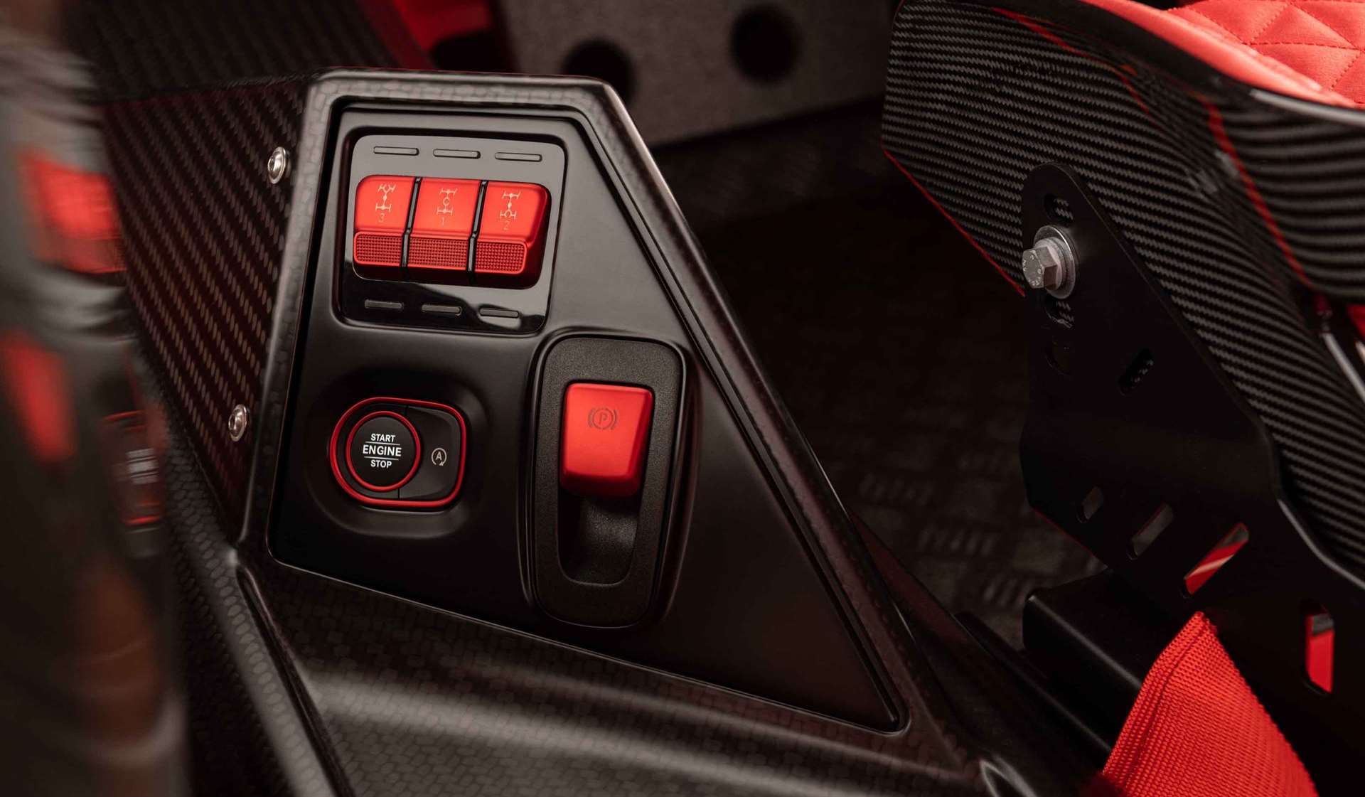 كل التفاصيل هنا تصرخ فخامة وتفرّد، من لوحة العدادات الرقمية إلى الألمنيوم المؤكسد الموزع بدقة، وحتى لمسات الكربون داخل المقصورة.
