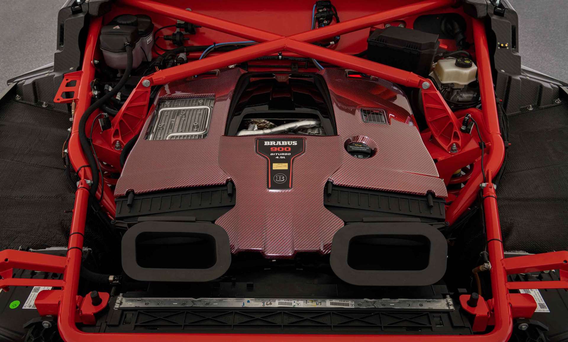 في قلب هذه الآلة، ينبض محرك مرعب: محرك V8 مزدوج التوربو سعة 4.5 لتر، معدل خصيصًا من قِبل برابوس. رقمه الرسمي؟ 900 حصان.. نعم، تسعمائة حصان وصف من العزم يصل إلى 1250 نيوتن متر!