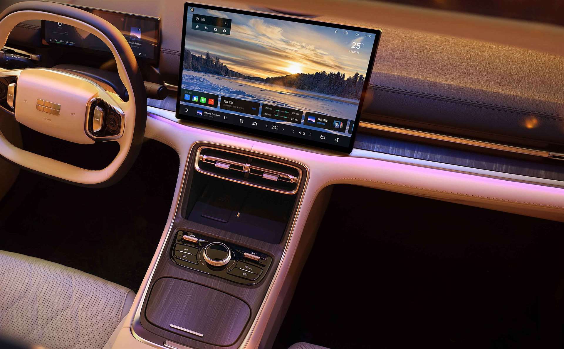 - تشمل أنظمة مساعدة السائق باقة جيلي G-Pilot H3 مع نظامي الملاحة على الطريق السريع NOA (نظام القيادة الآلية) وAPA (مساعد الركن التلقائي). كما تتميز الفئات الأعلى بنظام Flyme Sound الصوتي بـ 16 مكبر صوت.و التحكم الصوتي بالذكاء الاصطناعي مع ميزة التعرف على الكلام بأربع مناطق، والتفاعل متعدد الأوامر، والتوافق مع Huawei HiCar وCarLink.