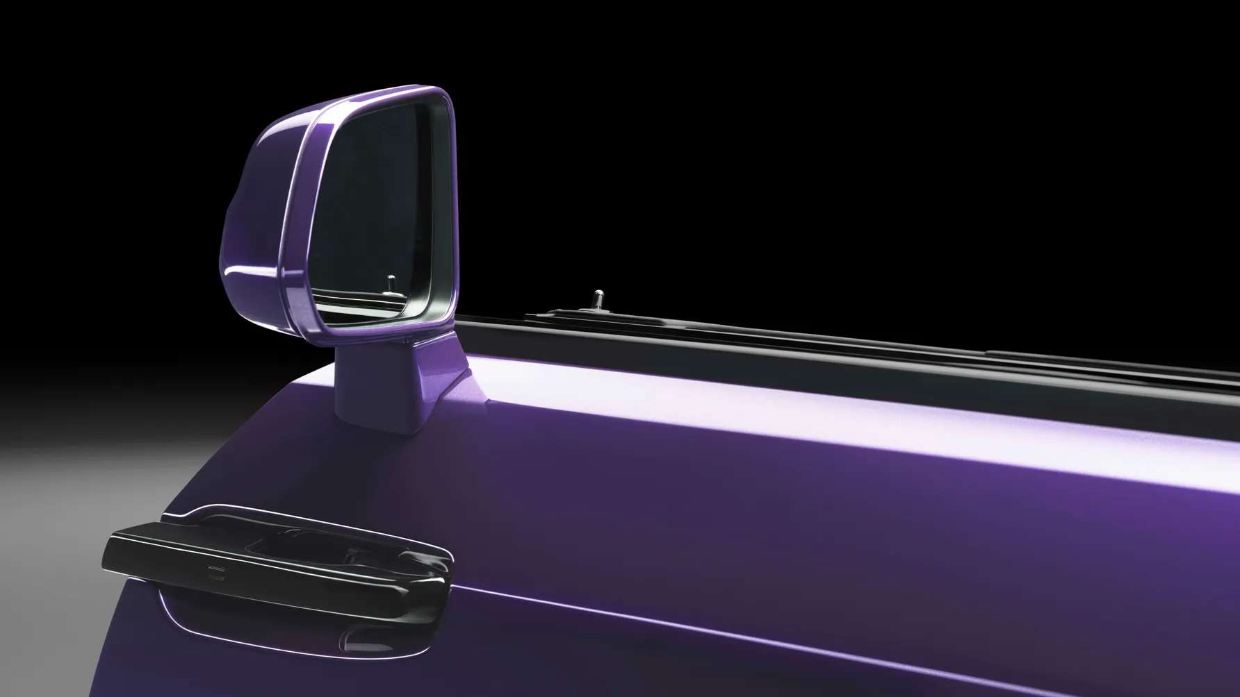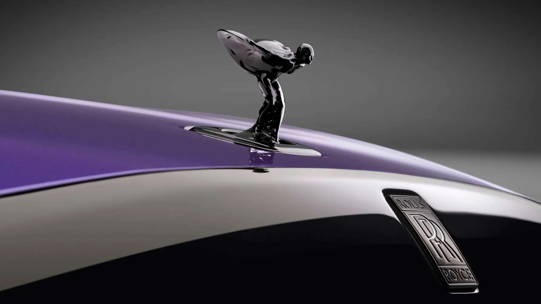 السيارة تجلس على عجلات مقاس 23 إنش، تمنحها مظهرًا واثقًا وعضليا. معظم التفاصيل الخارجية مطلية بالكروم الأسود اللامع، حتى تمثال “روح النشوة” على غطاء المحرك اكتسى بذلك اللون الداكن.