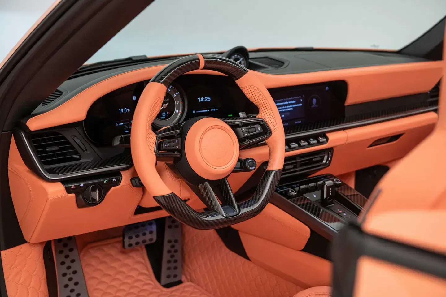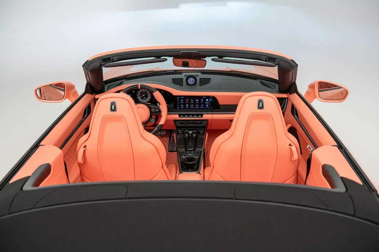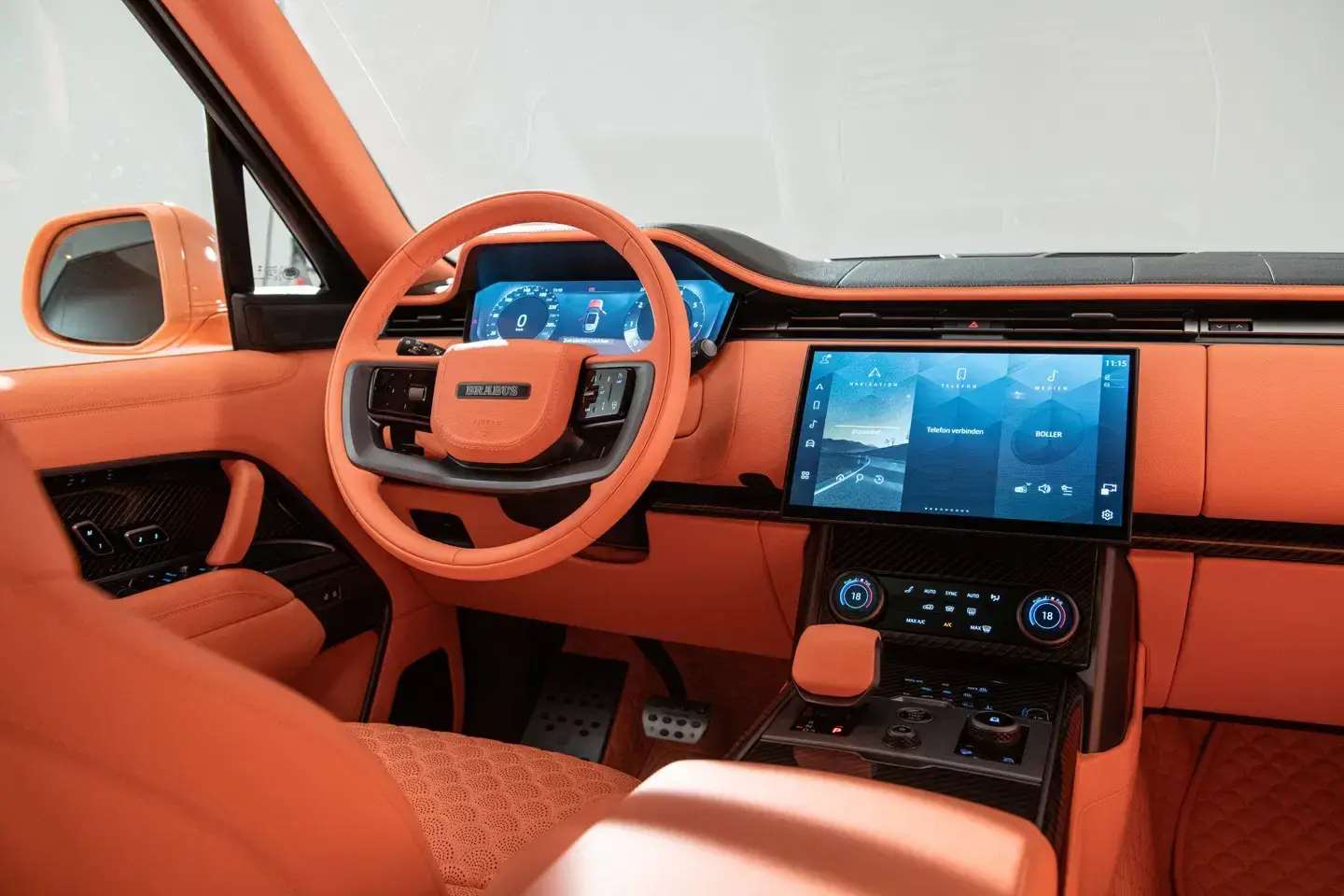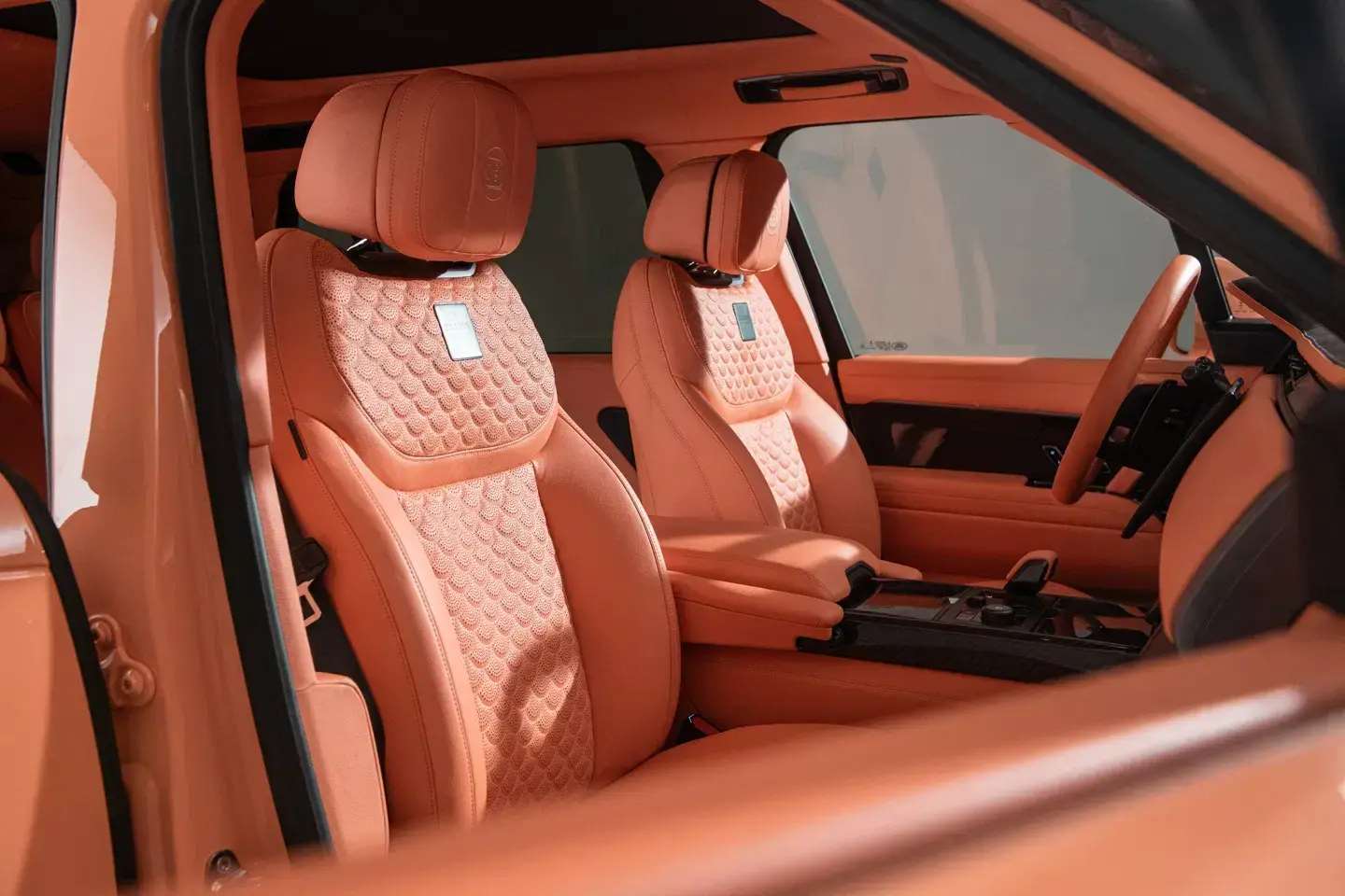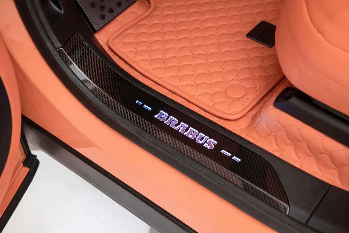 لكن أكثر ما يلفت النظر فيها هو التناسق التام بين جمالية المظهر الخارجي ولون الخوخ في المقصورة الداخلية، المكسوة بتفصيلات BRABUS Masterpiece ونقشة “Seashell Diamond” الفاخرة التي أصبحت توقيعًا خاصًا لعلامة BRABUS.