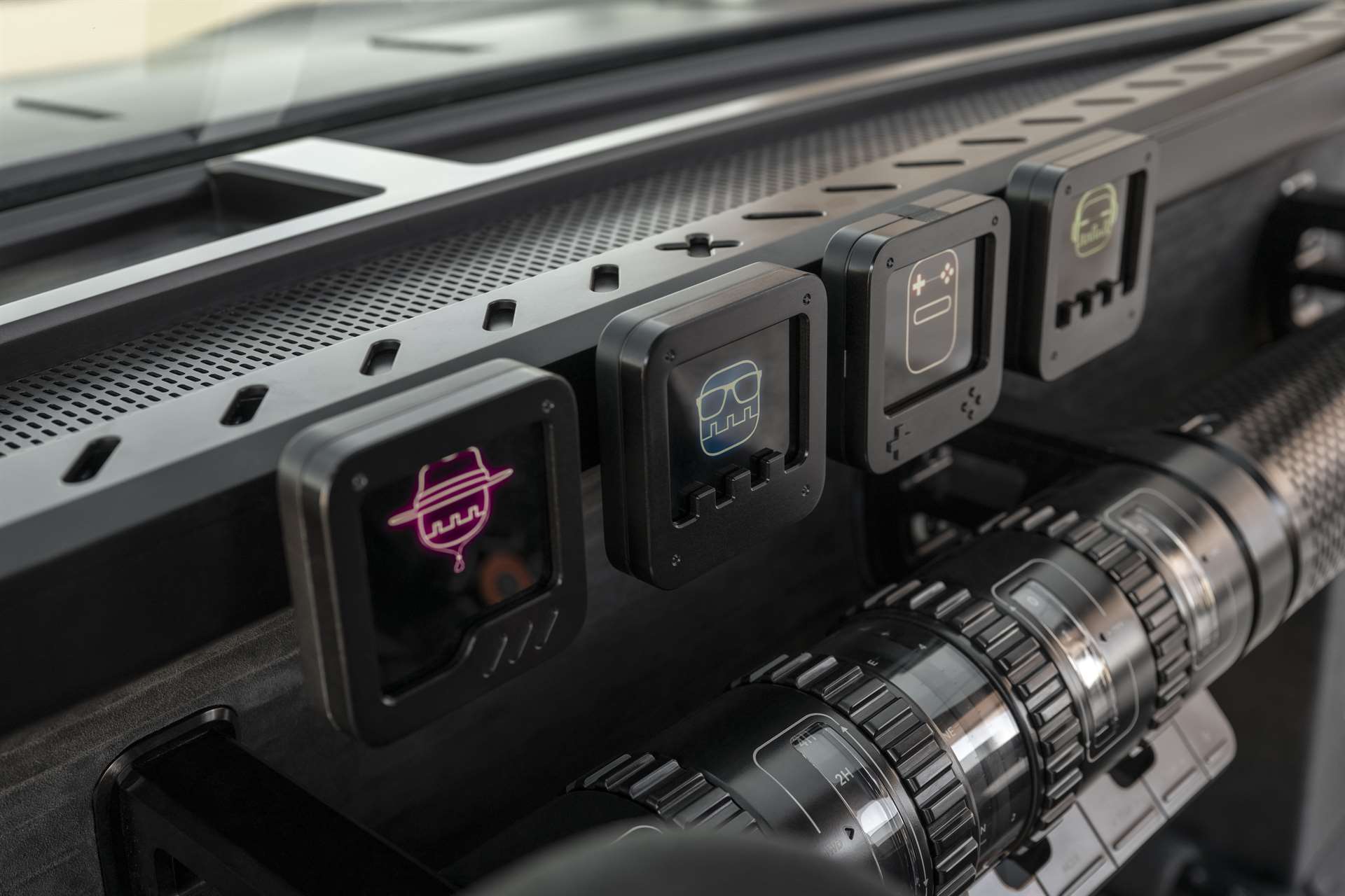 - لوحة عدادات مبتكرة تُشبه صفيحة فولاذ منحنية، مزودة بإضاءة محيطة ناعمة خلف ثقوب دقيقة تمنح المقصورة لمسة فريدة.