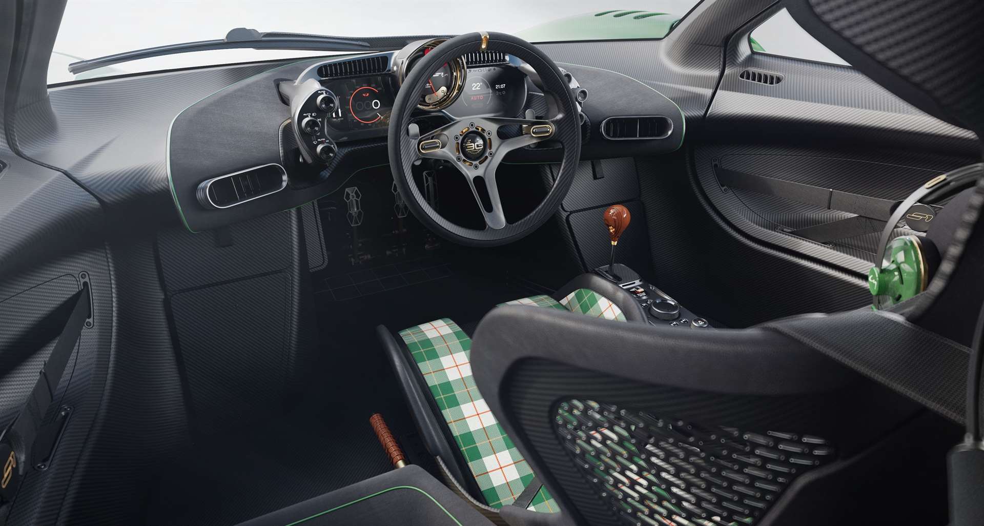 تصميم المقصورة يضع السائق في قلب التجربة، مع مقعد مركزي — تمامًا مثل المكلارين F1 الأصلية.