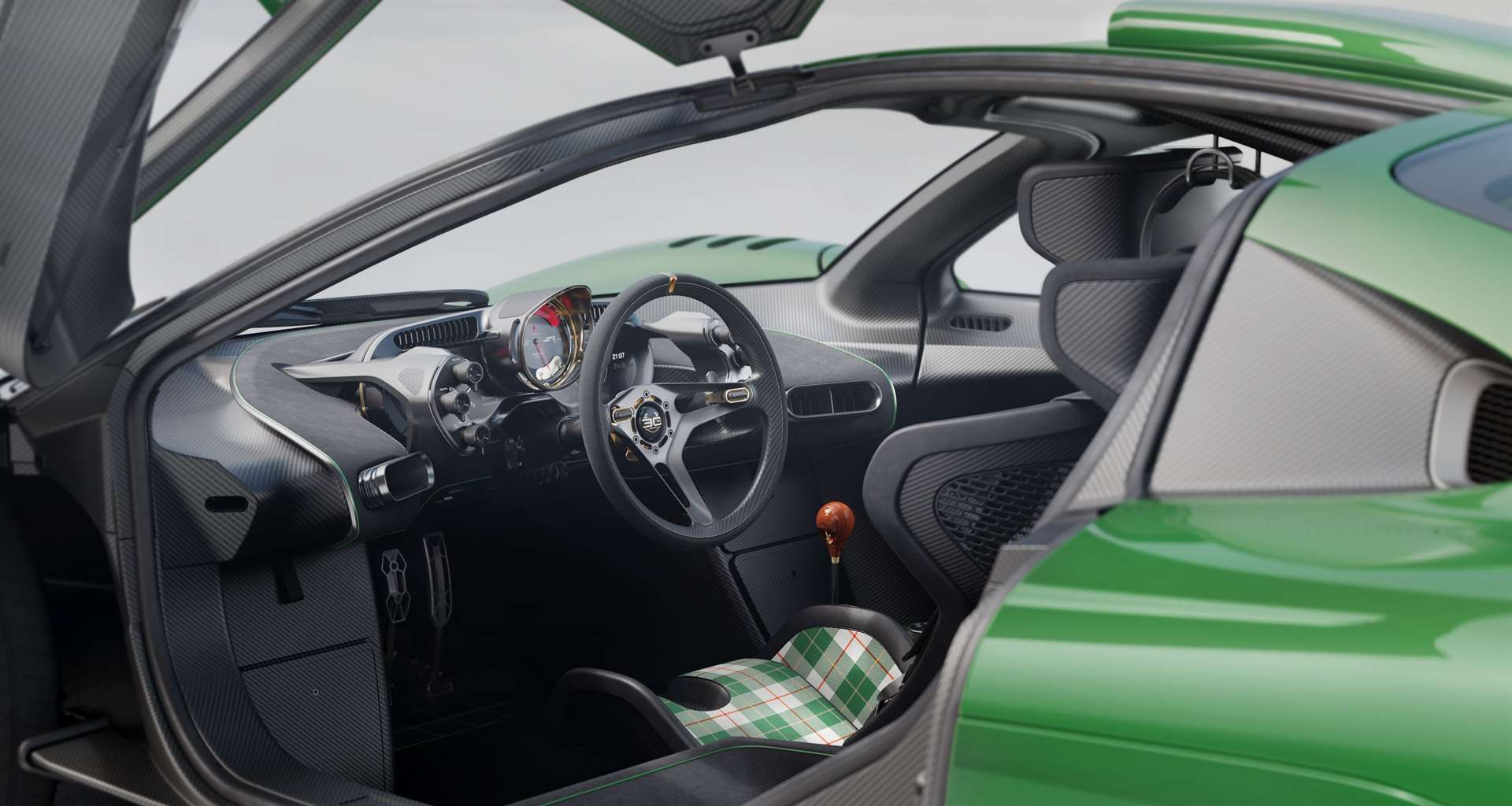 تصميم المقصورة يضع السائق في قلب التجربة، مع مقعد مركزي — تمامًا مثل المكلارين F1 الأصلية.
