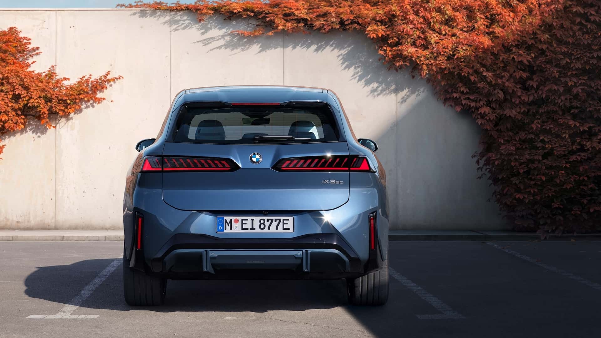 من الخلف، تأتي المصابيح الخلفية بشكل “L” أفقي بارز، ومع أبعاد السيارة التي تبلغ 4,782 ملم طولًا، 1,895 ملم عرضًا، و1,635 ملم ارتفاعًا؛ تقدم iX3 حضوراً قوياً كسيارة SAV (سيارة رياضية متعددة الوظائف).