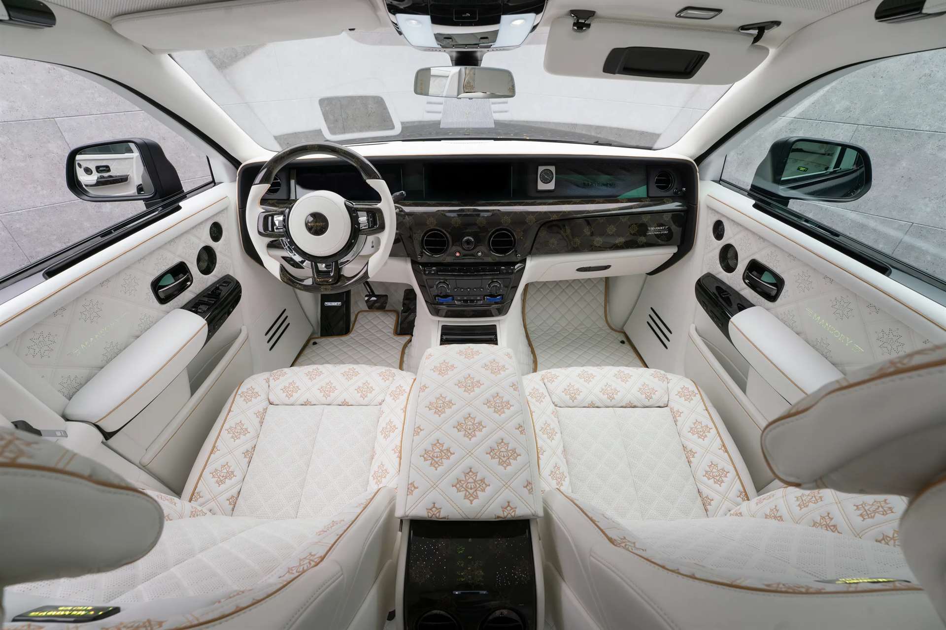 بعكس بعض طرازات مانصوري التي أُنتقدت بسبب المبالغة في الزخرفة الداخلية، فإن مقصورة “Linea Nera d’Oro” تعكس طابعًا راقيًا جدًا. اللون الأبيض هيمن على الداخل، مقرونًا بلمسات ذهبية راقية، وبعض التفاصيل السوداء المتزنة.